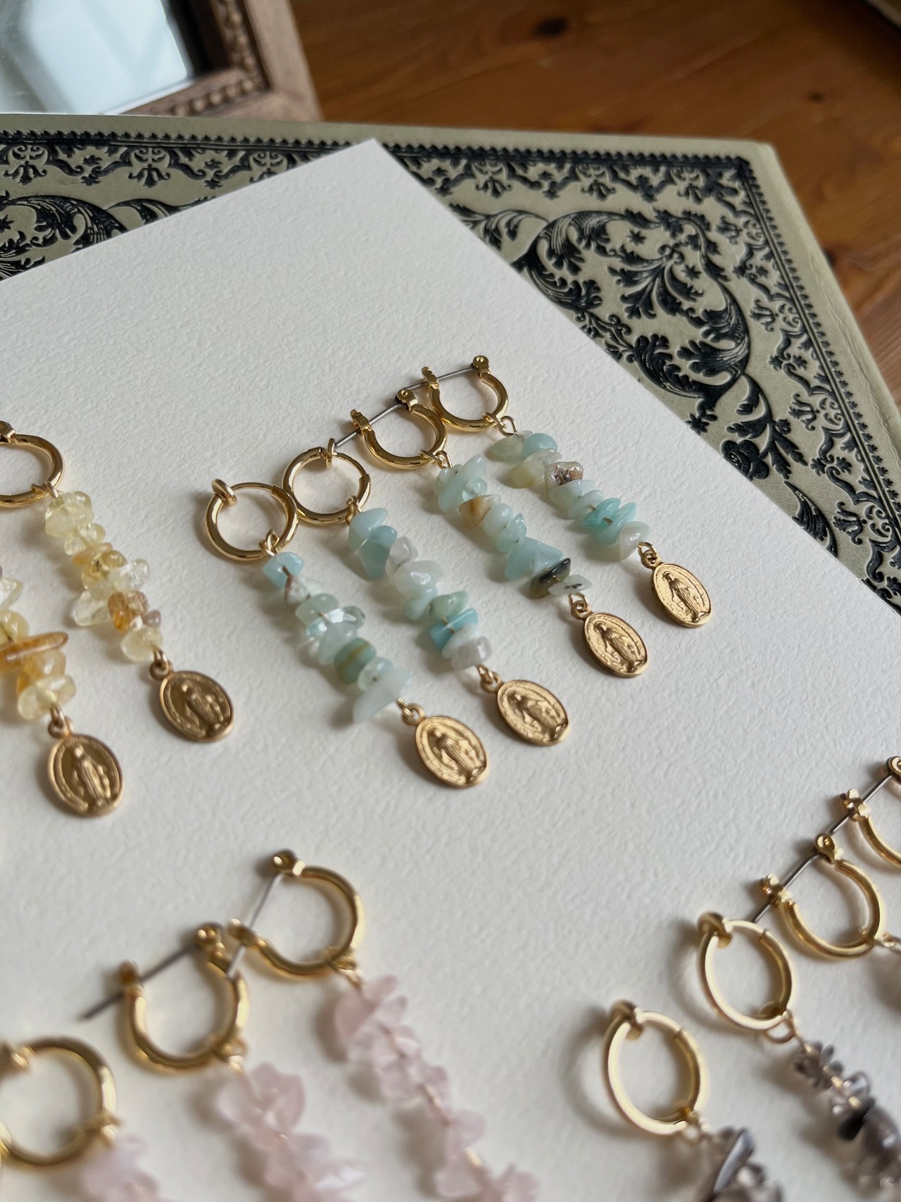 天然石/アマゾナイトのナチュラルな美しさを生かしたフープピアス/イヤリング。