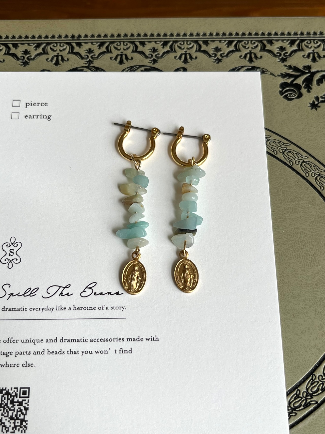 素材:チタンポスト(ピアス)、アマゾナイト、真鍮