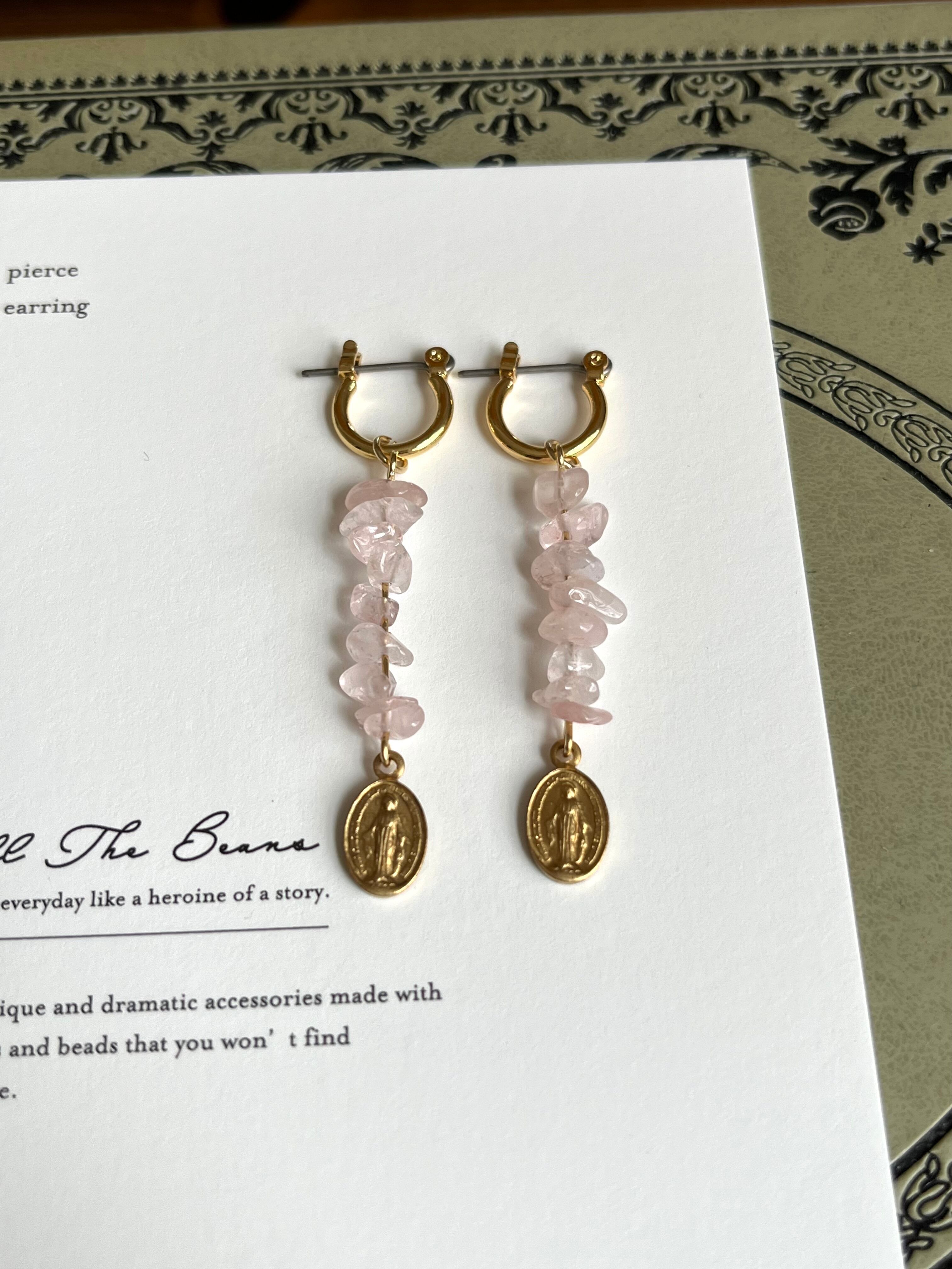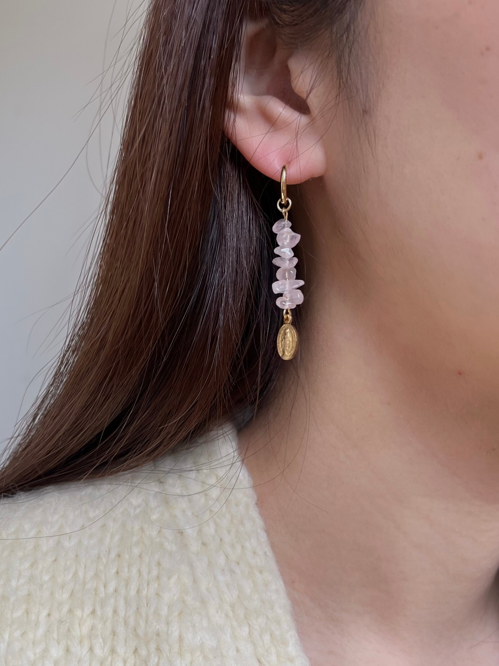 天然石/ローズクォーツのナチュラルな美しさを生かしたフープピアス/イヤリング。