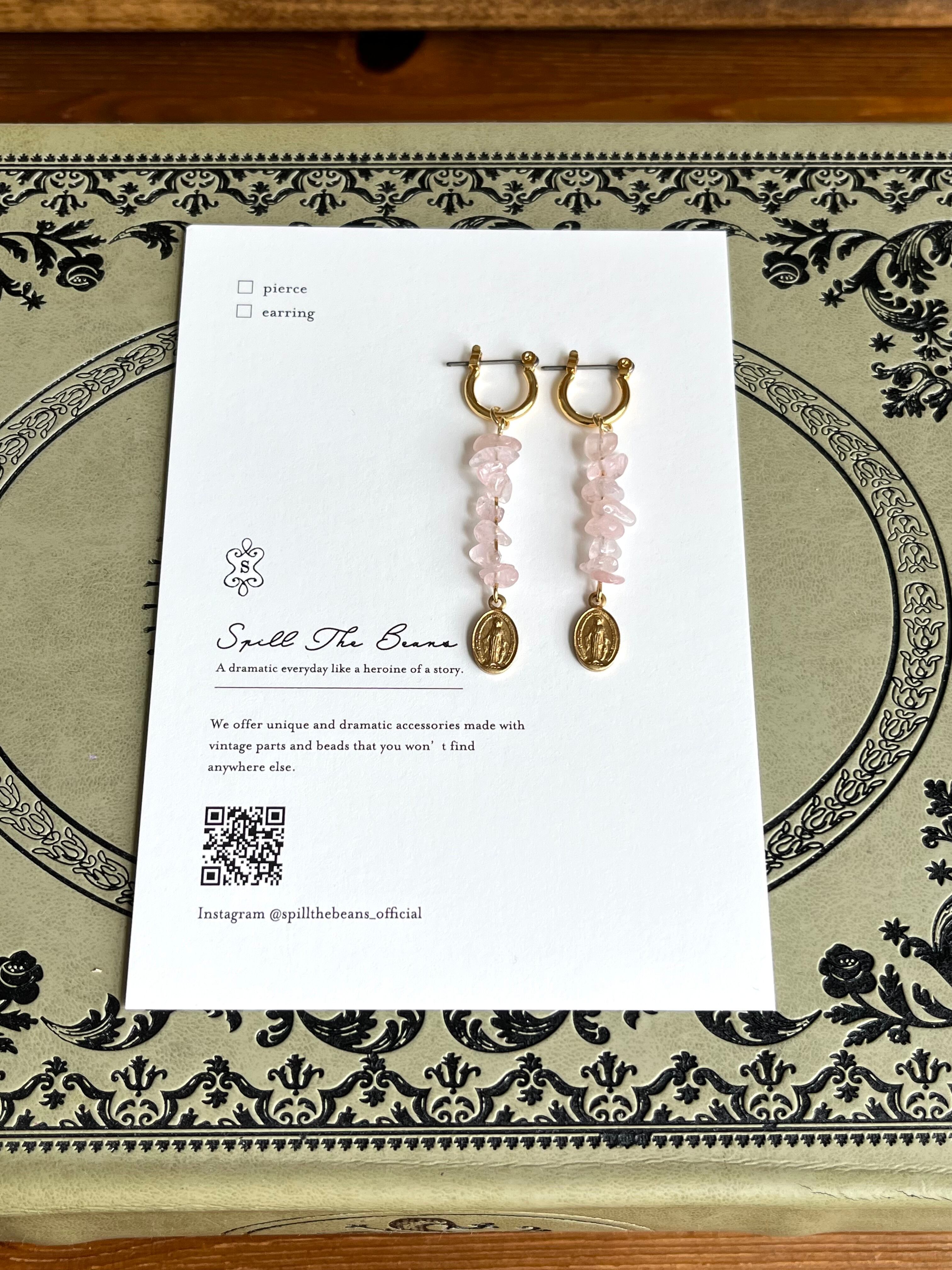 素材:チタンポスト(ピアス)、ローズクォーツ、真鍮