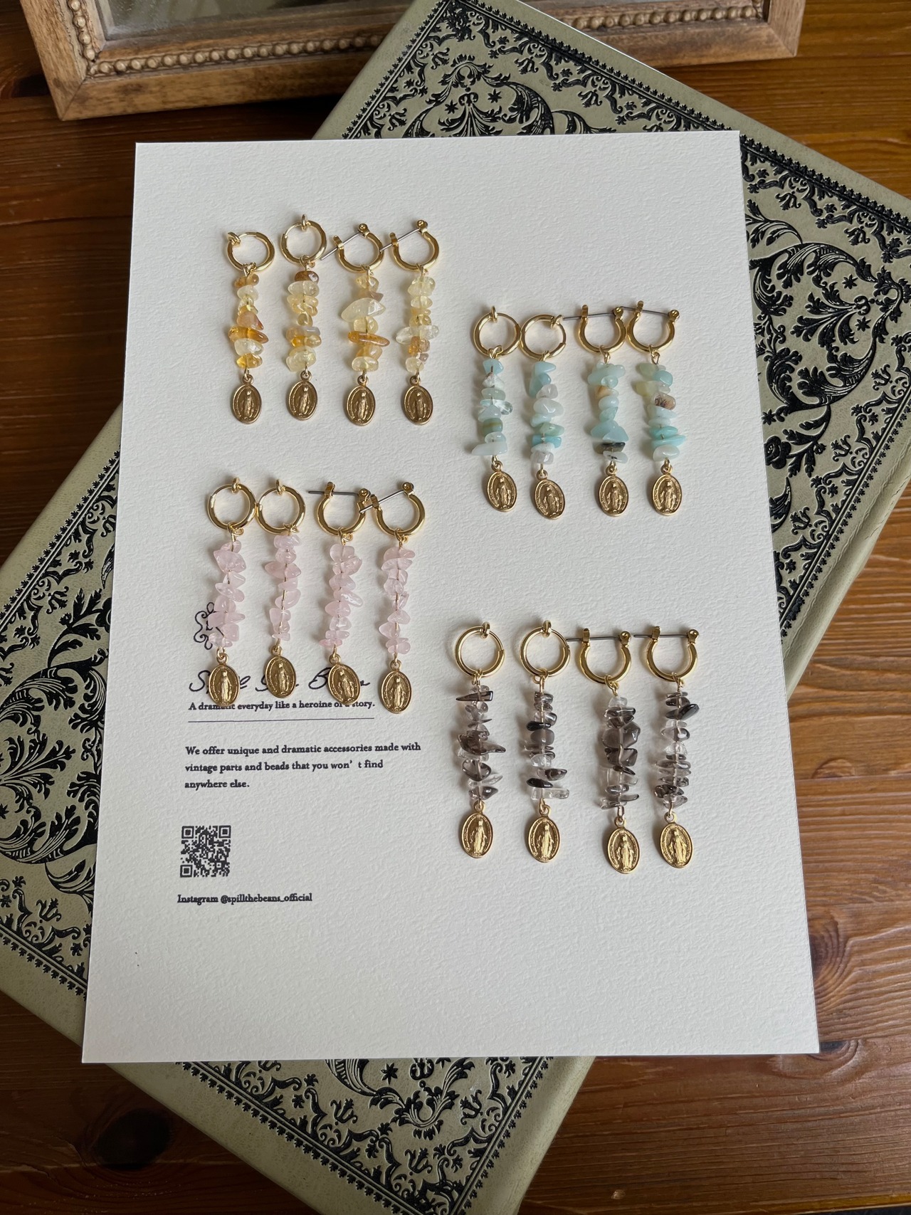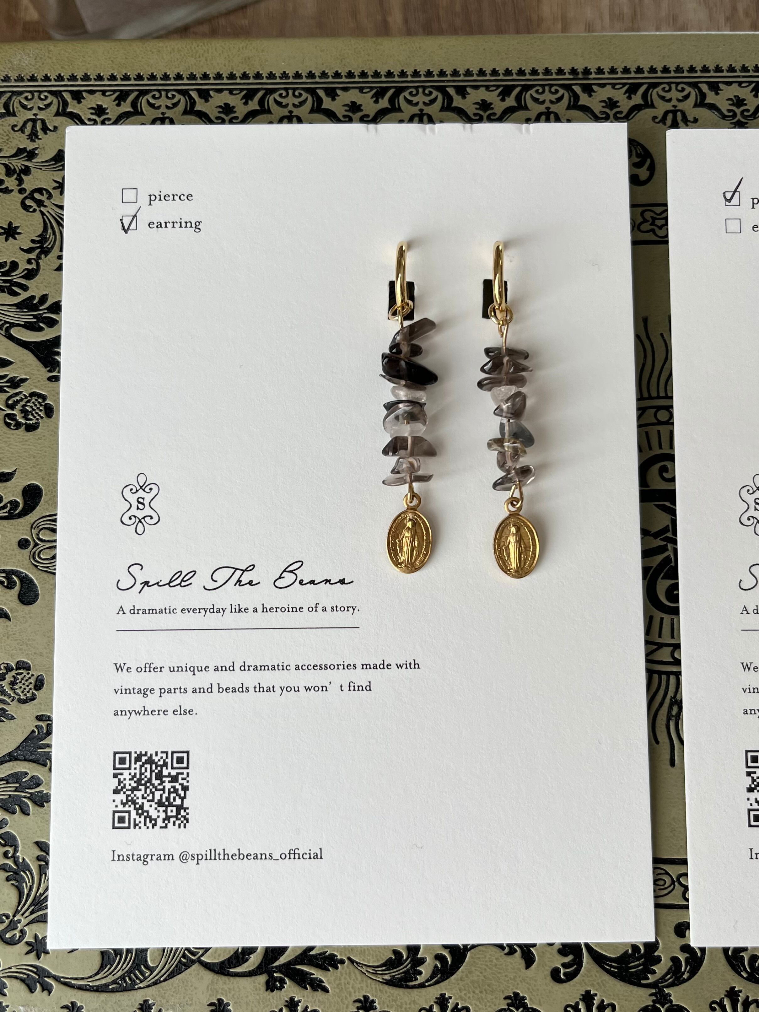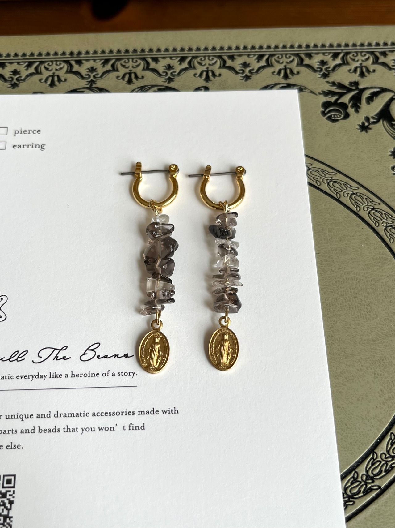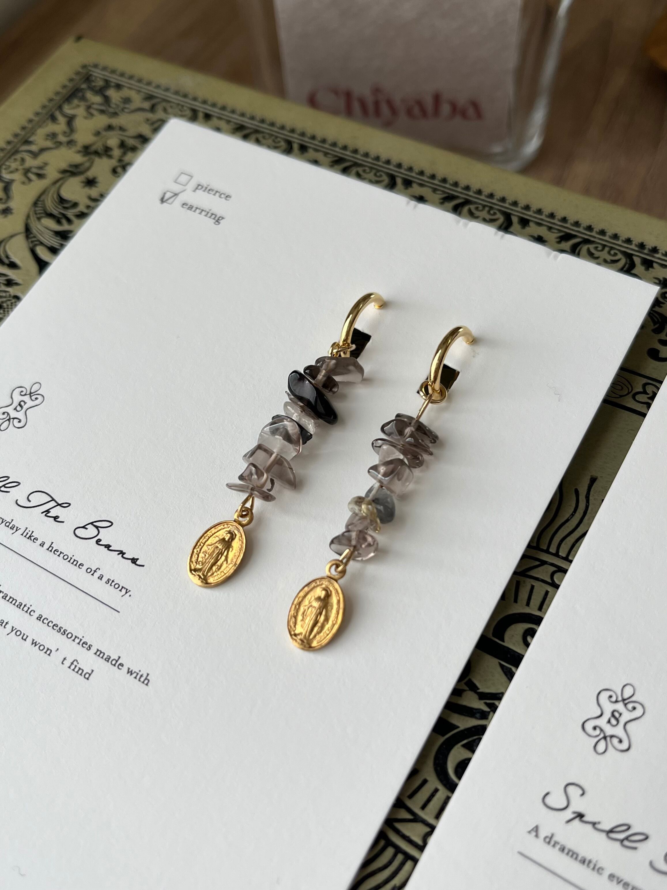 素材:チタンポスト(ピアス)、スモーキークォーツ、真鍮