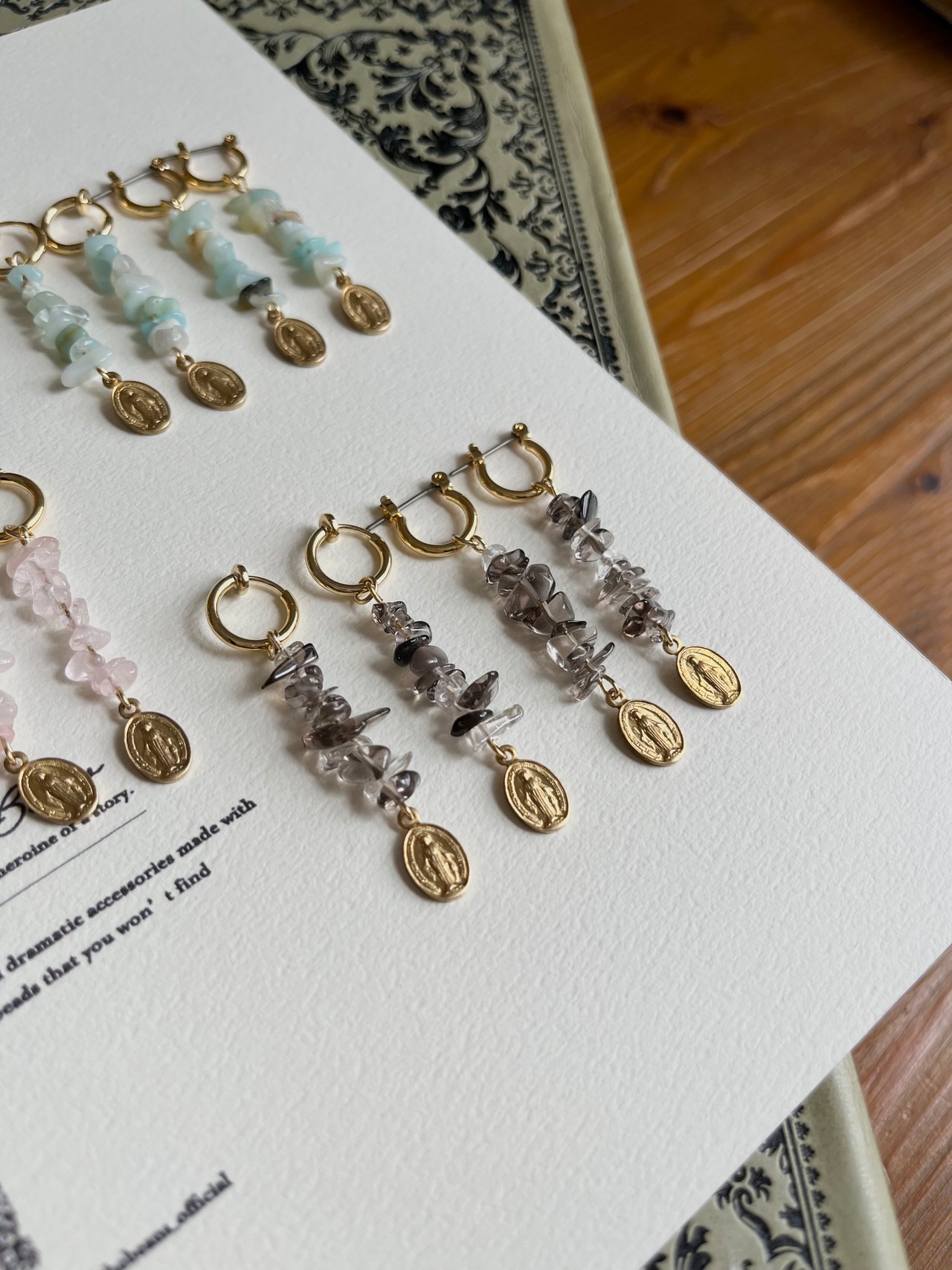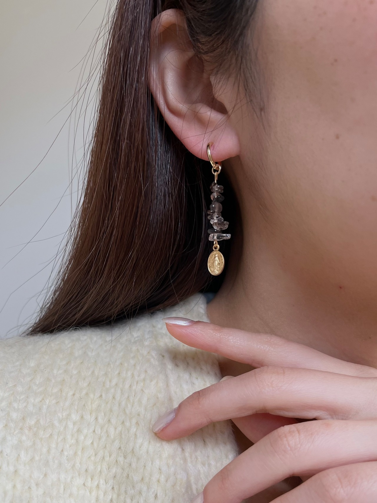 天然石/スモーキークォーツのナチュラルな美しさを生かしたフープピアス/イヤリング。