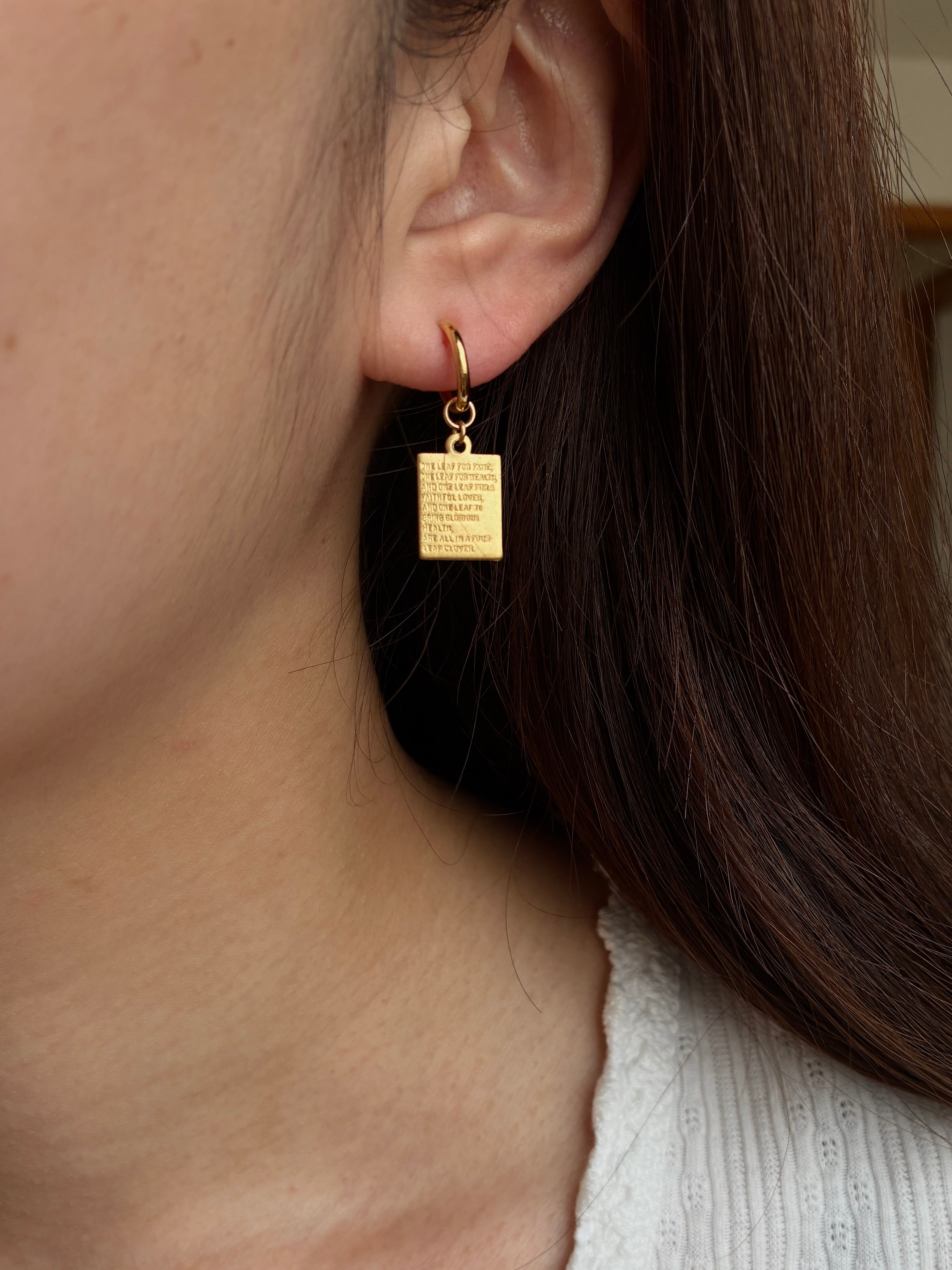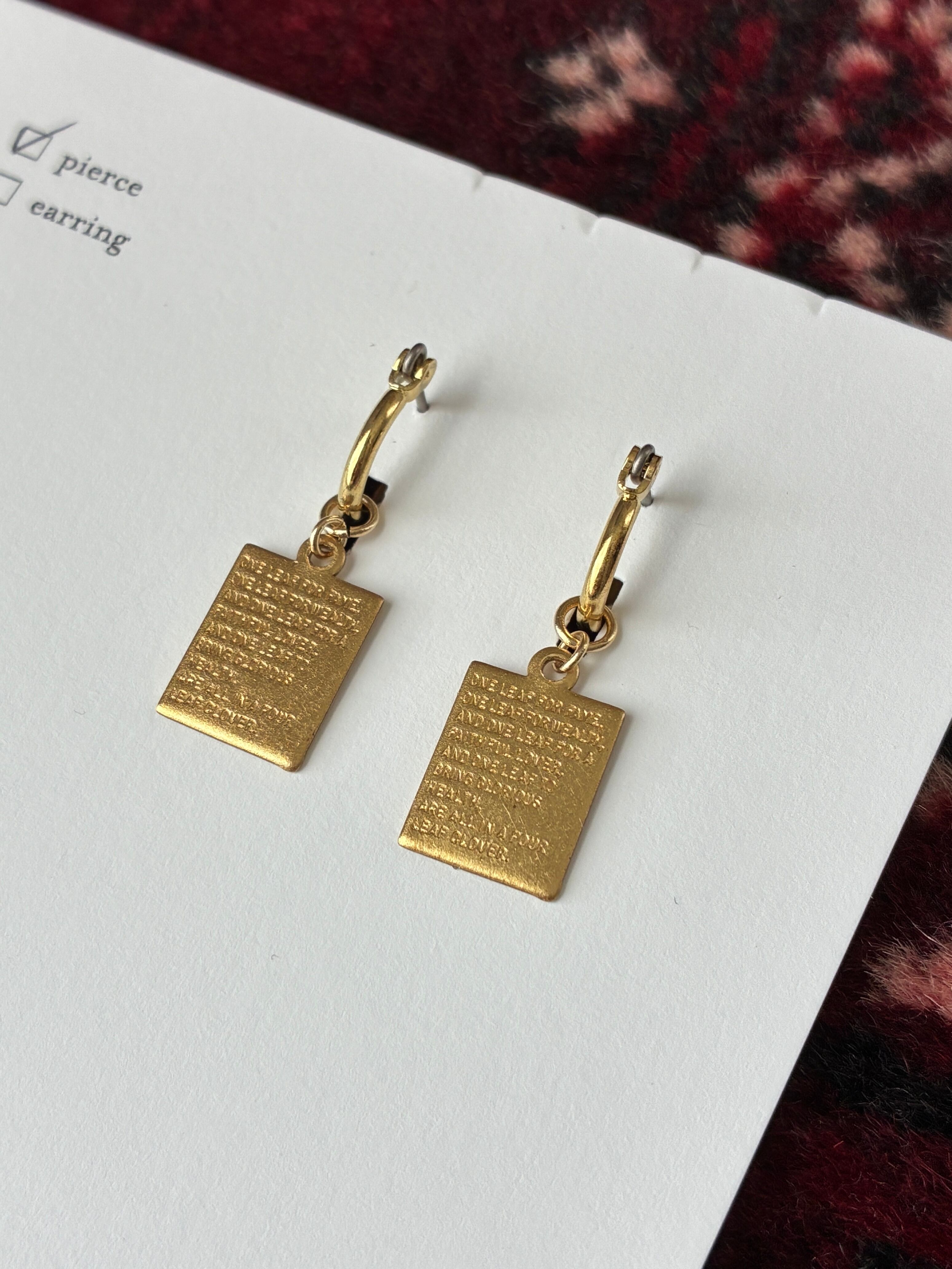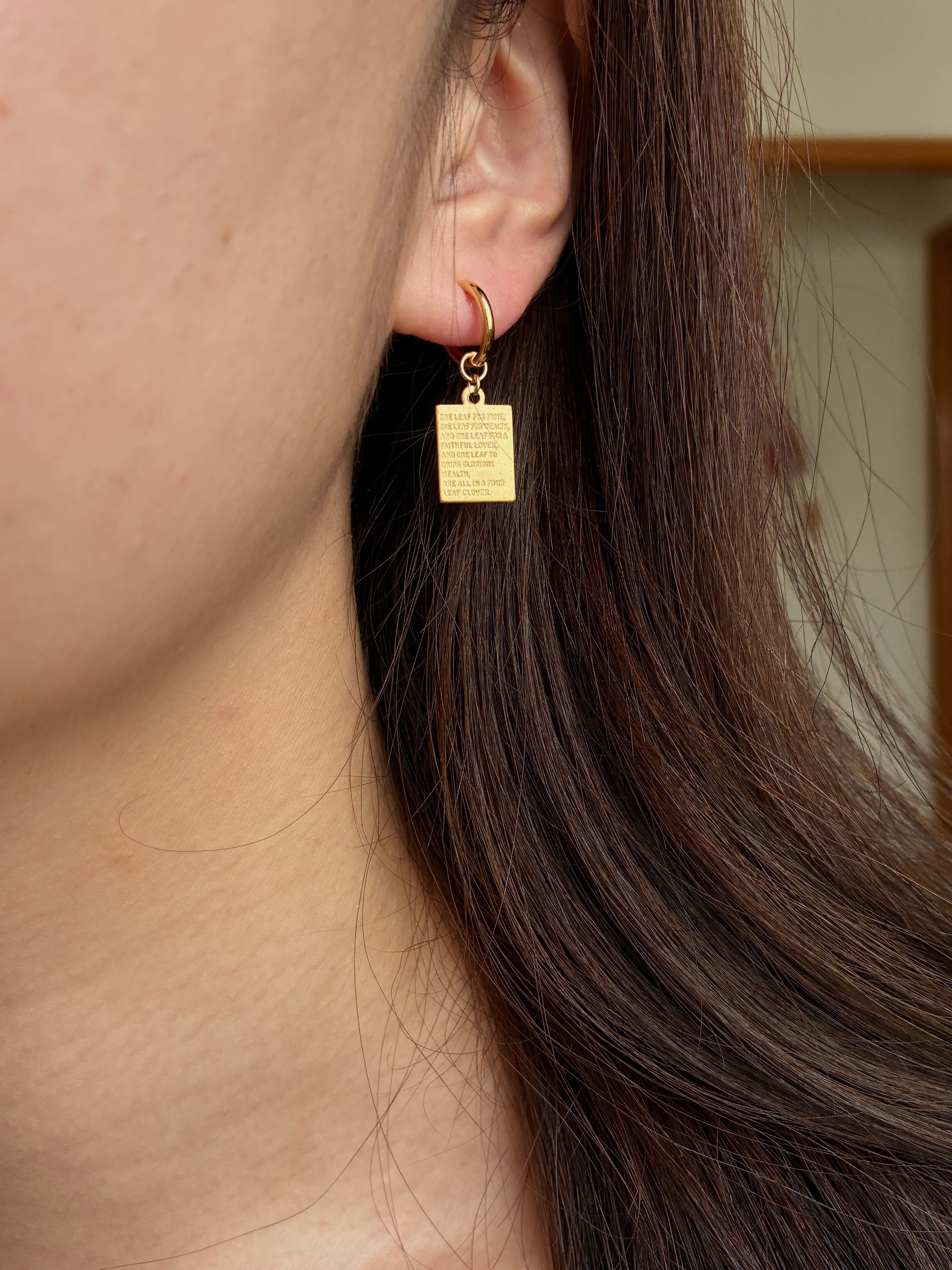 四葉の秘密が刻印されたBRASSプレートのフープピアス/イヤリング。
