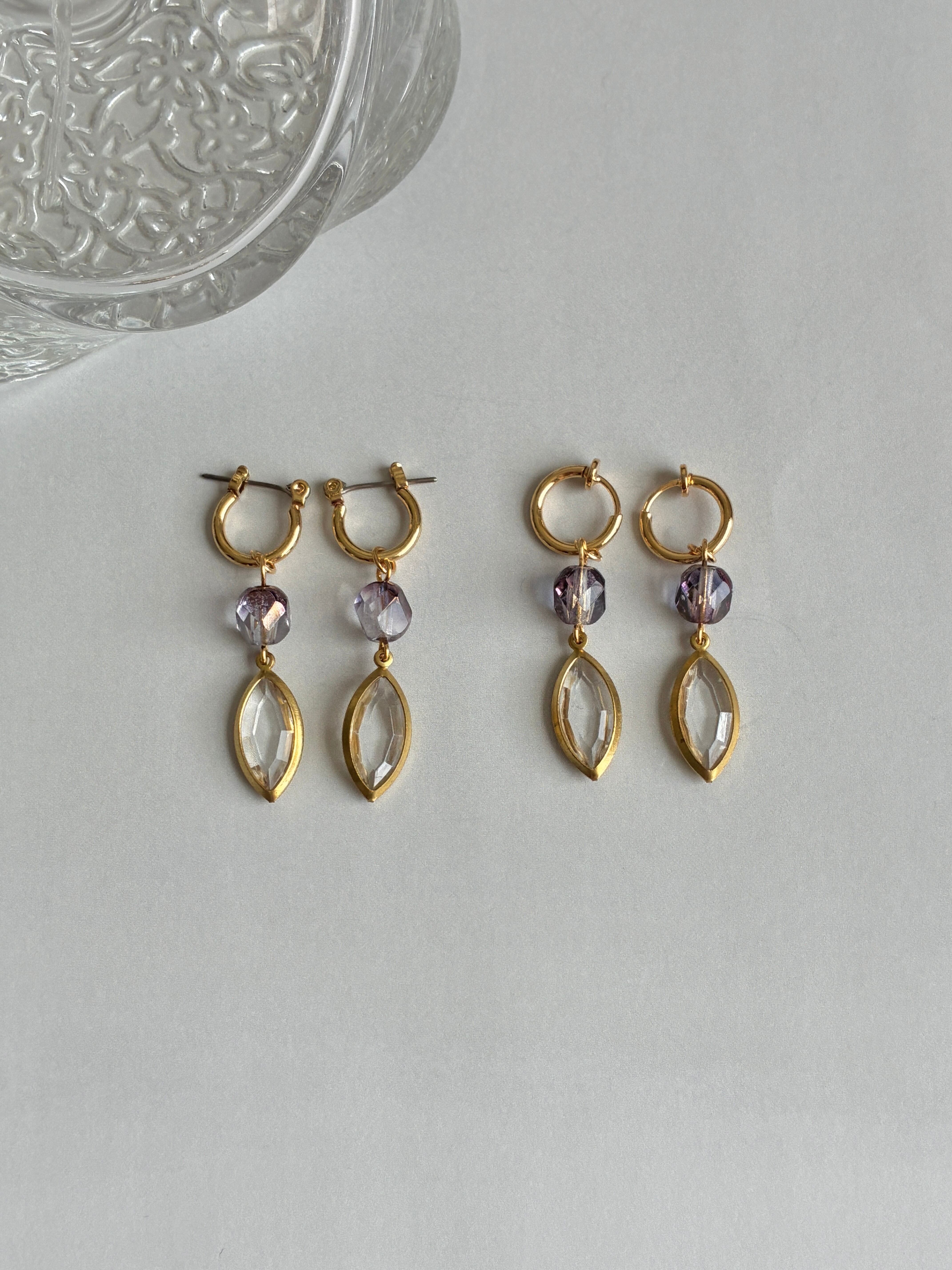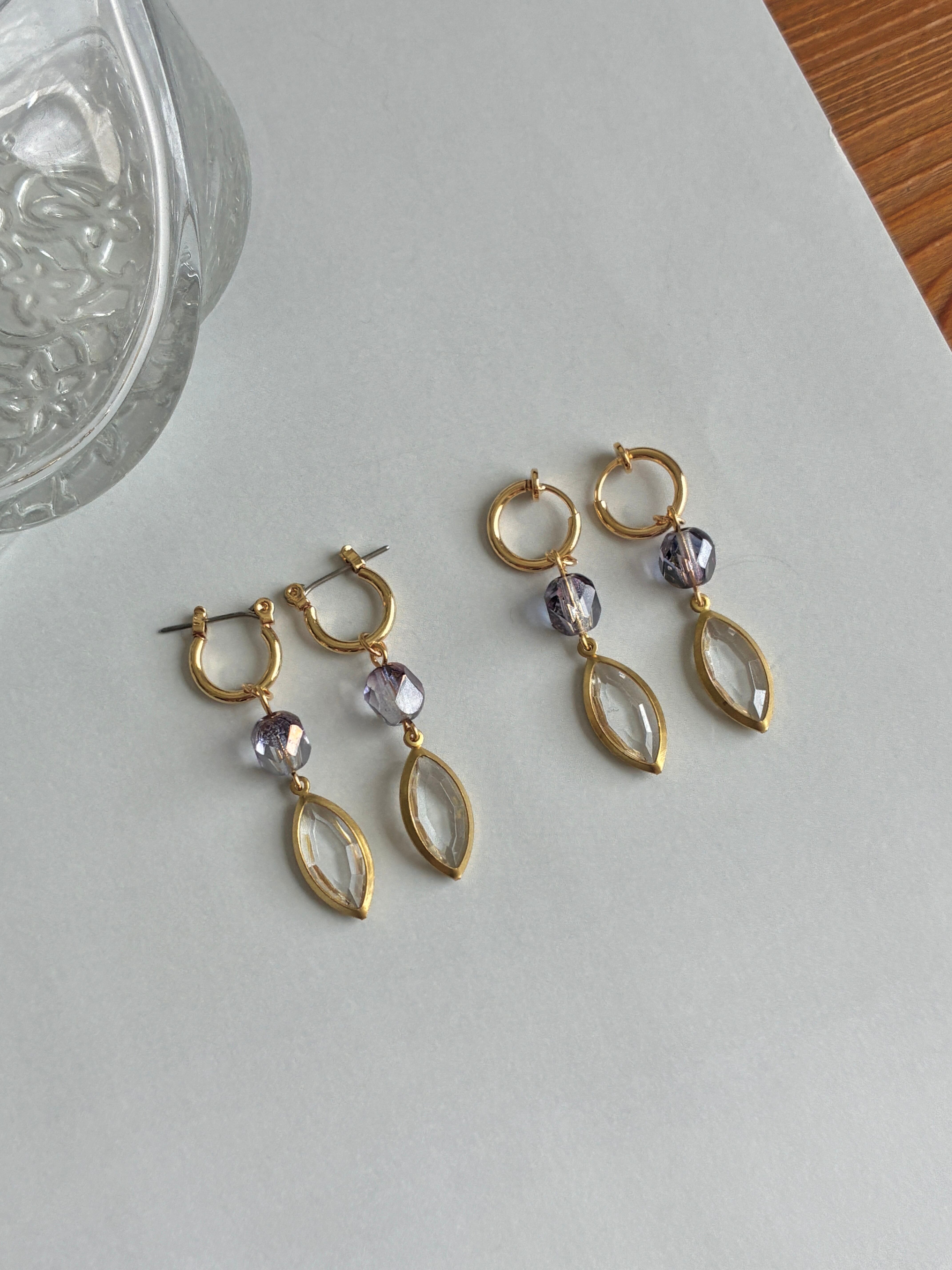チェコガラスとクリアリーフのフープピアス/イヤリング。