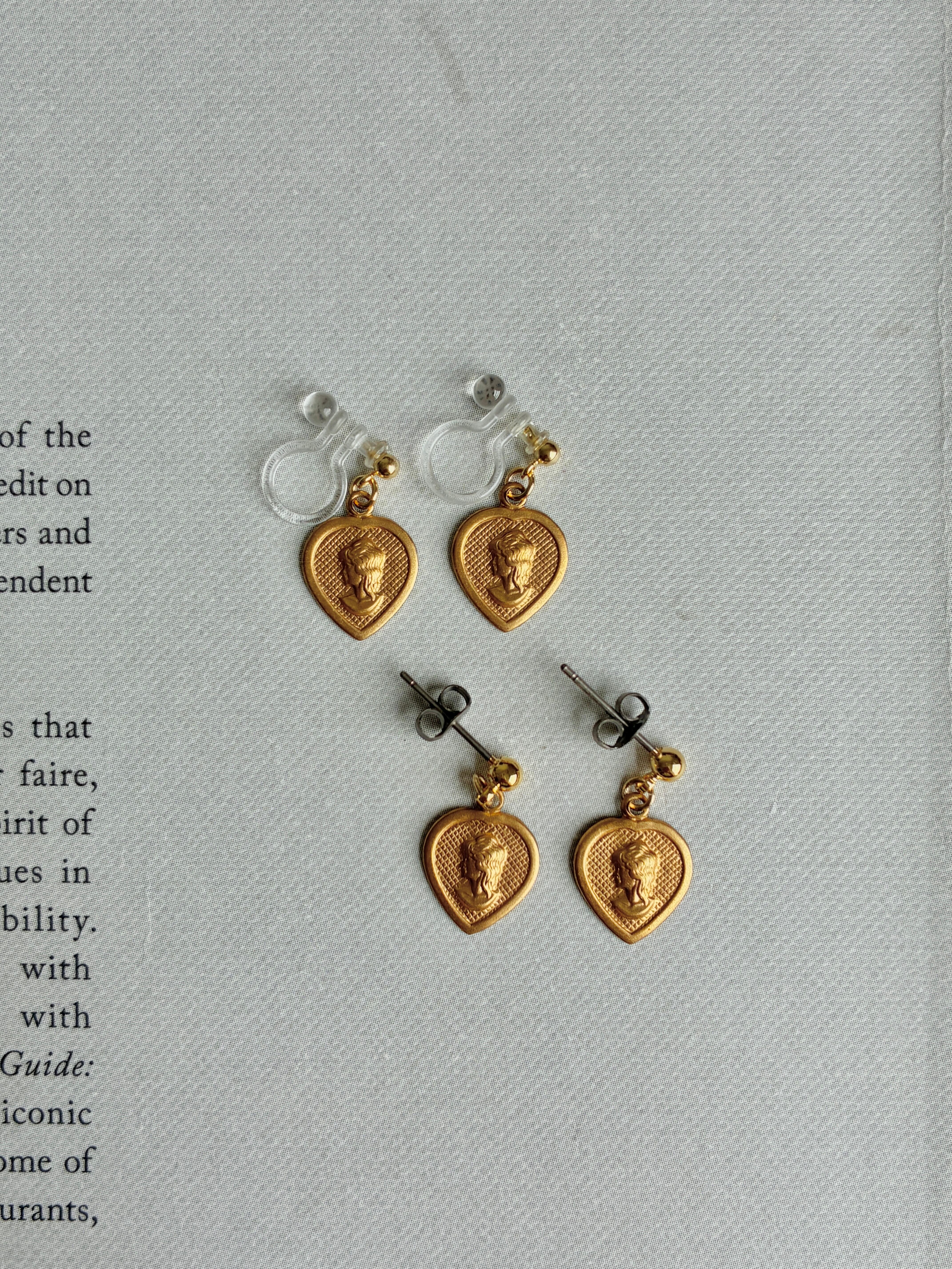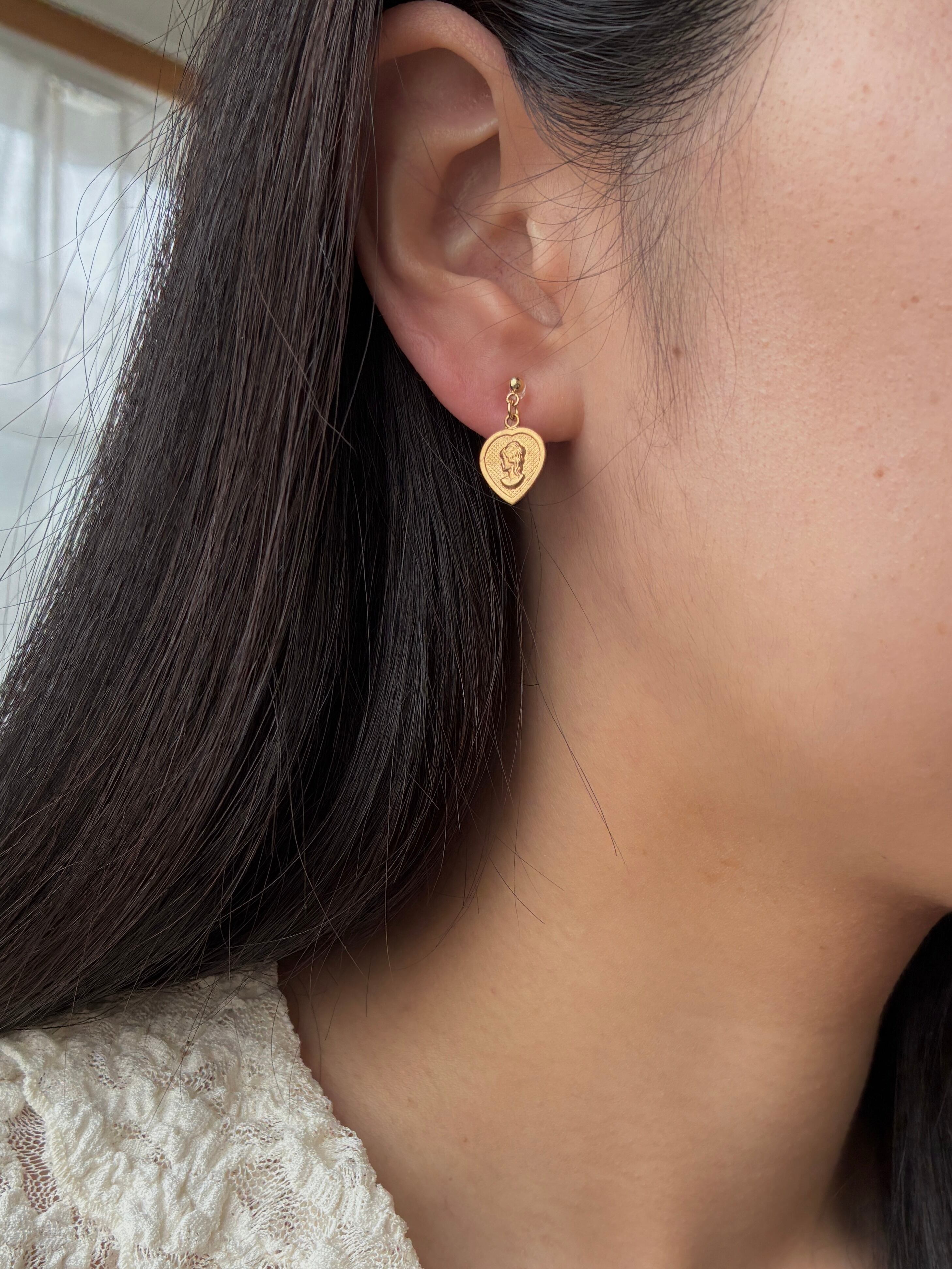 ハートカメオチャームのピアス/イヤリング。