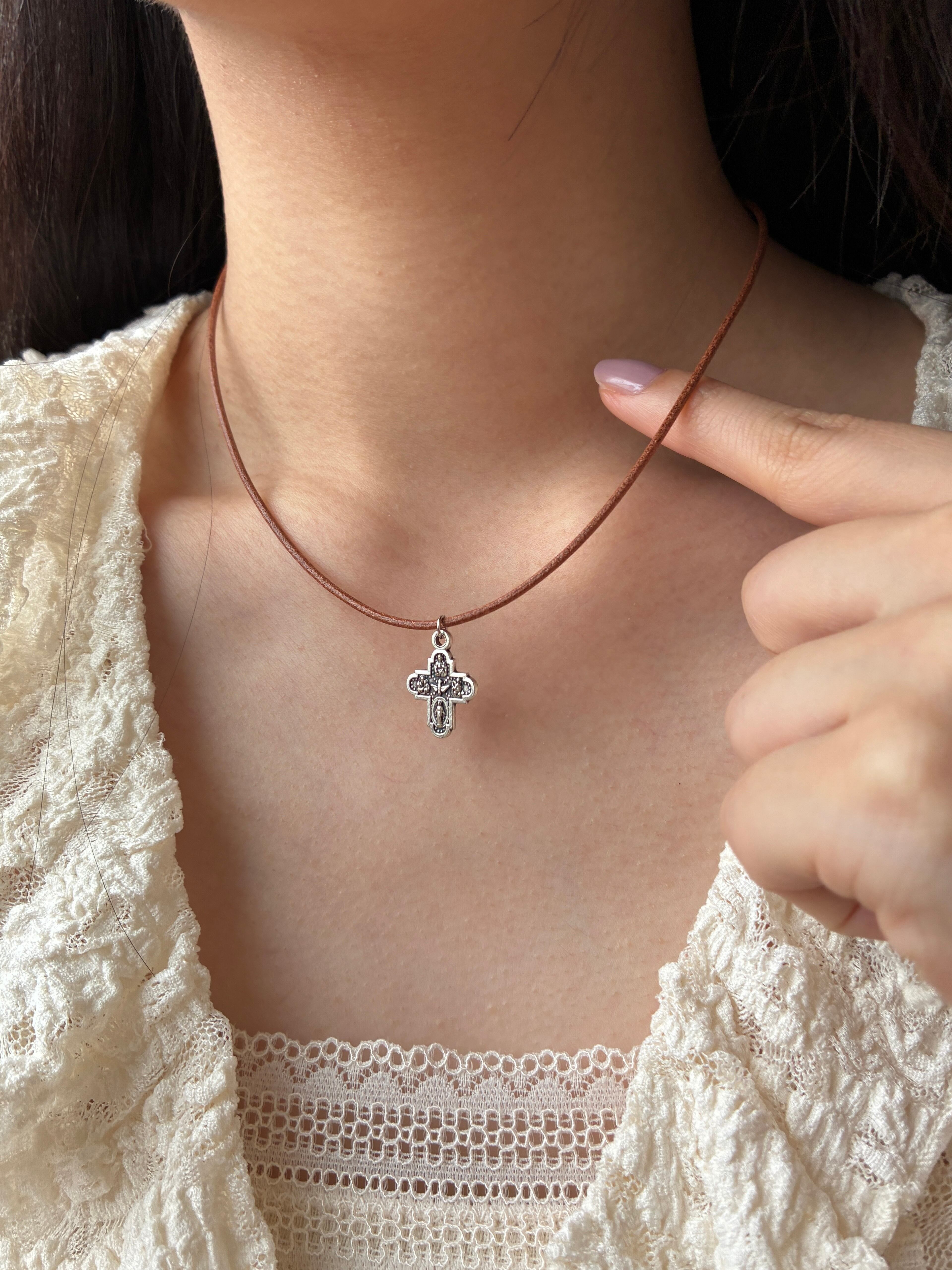 cross medal leather cord necklace