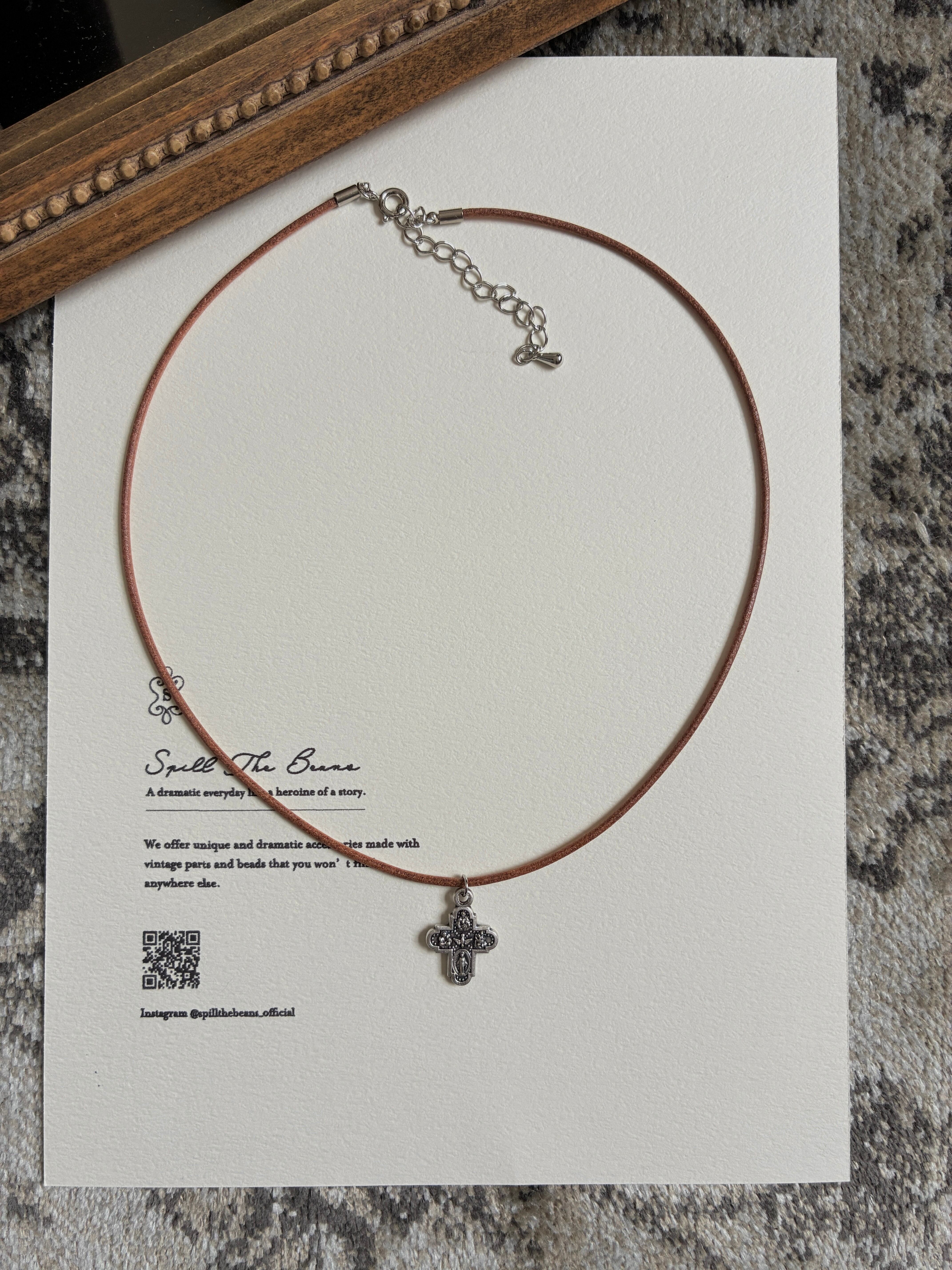 ■cross medal leather cord necklace