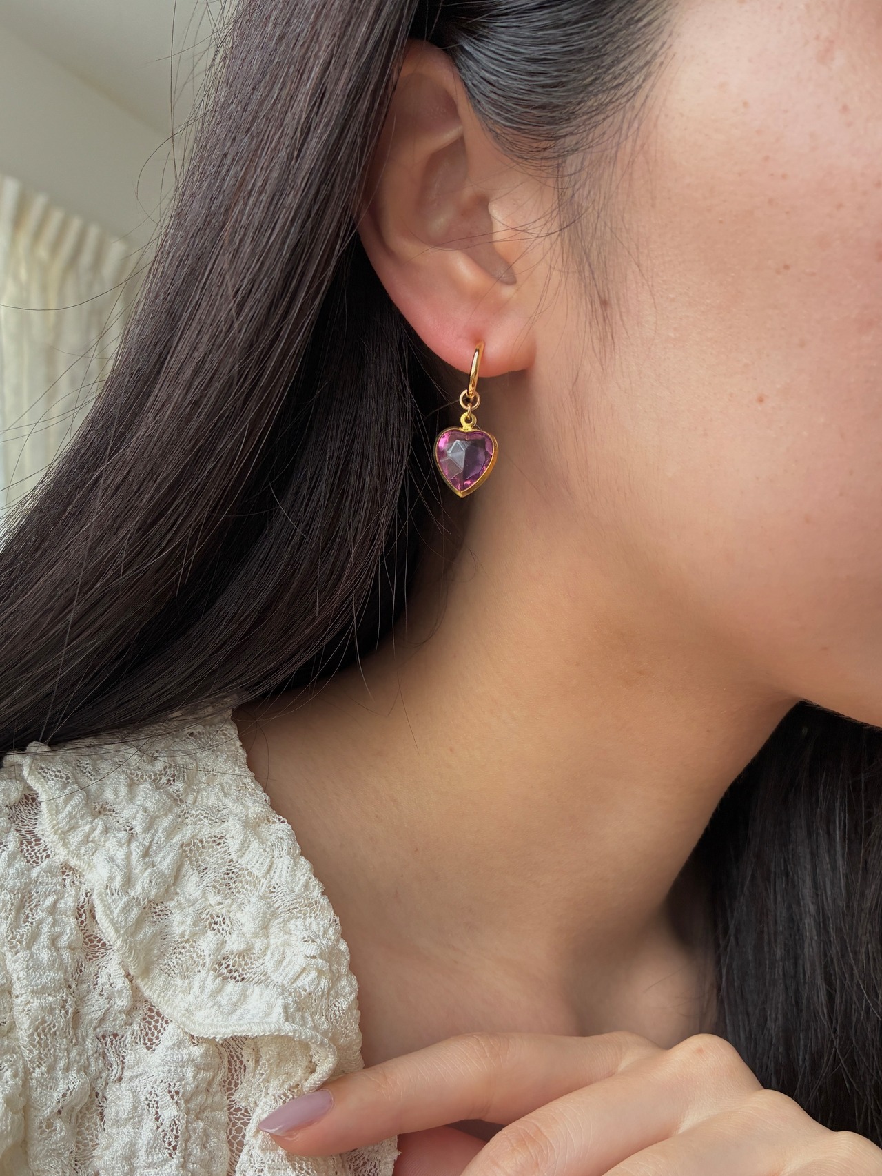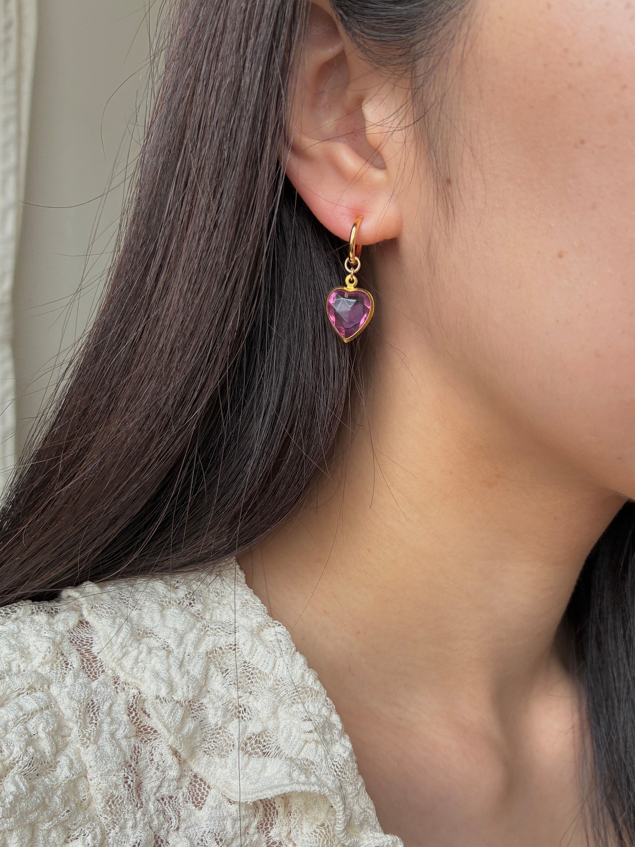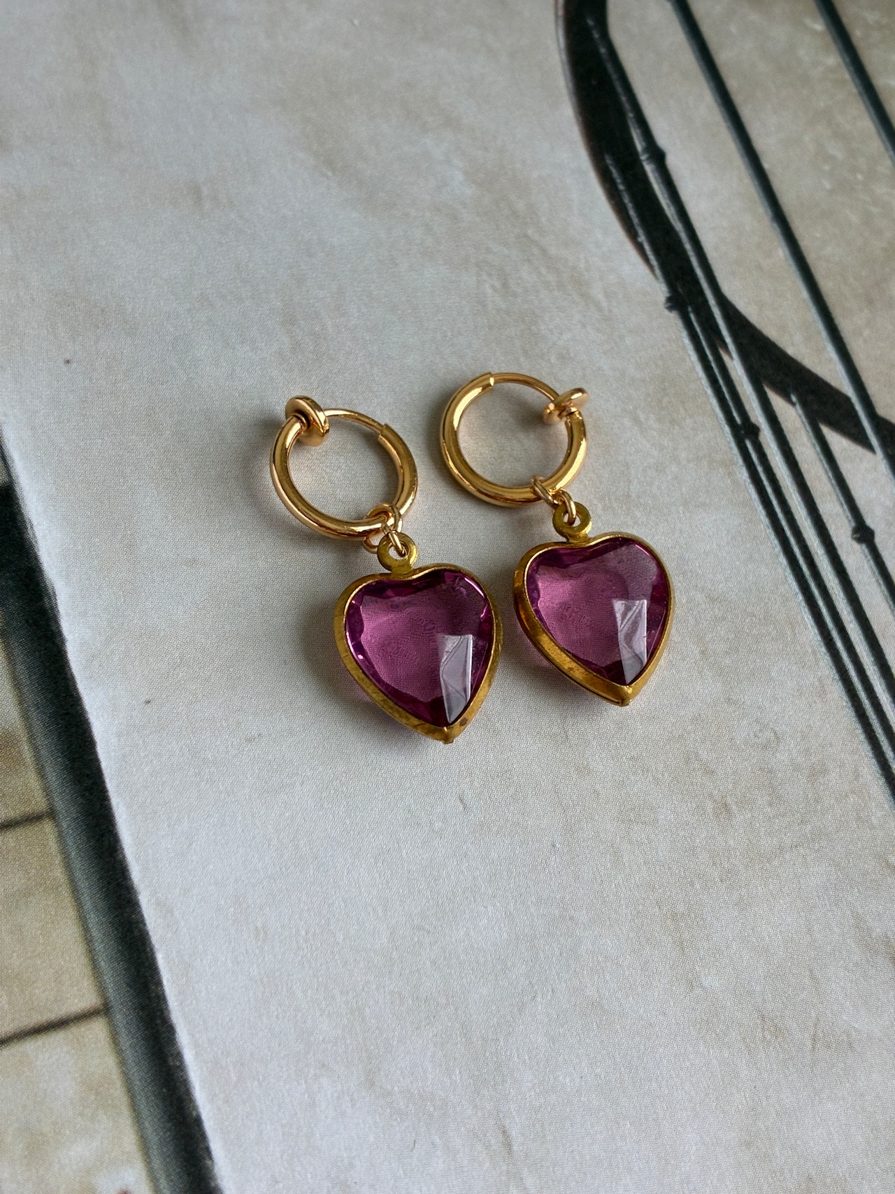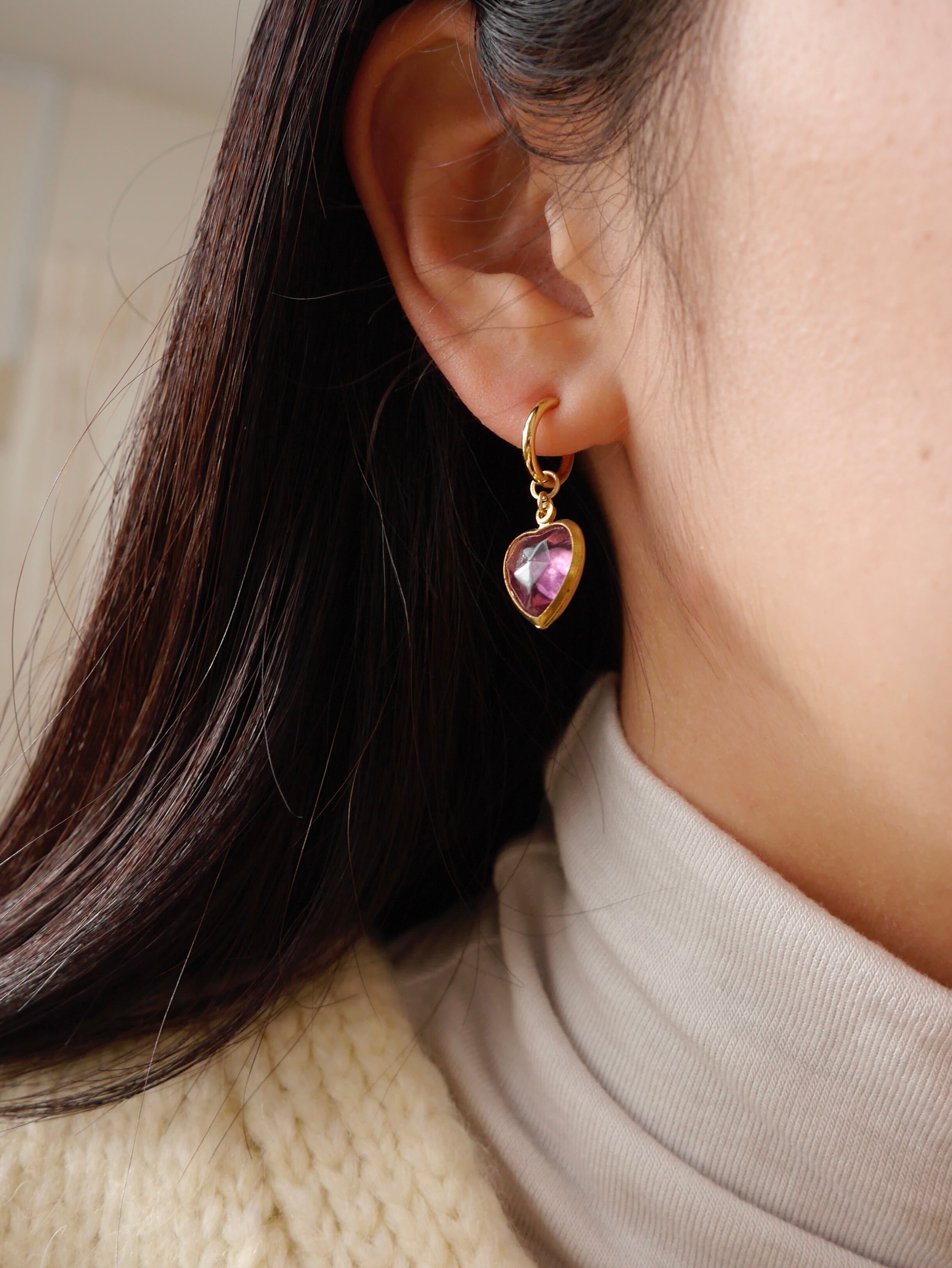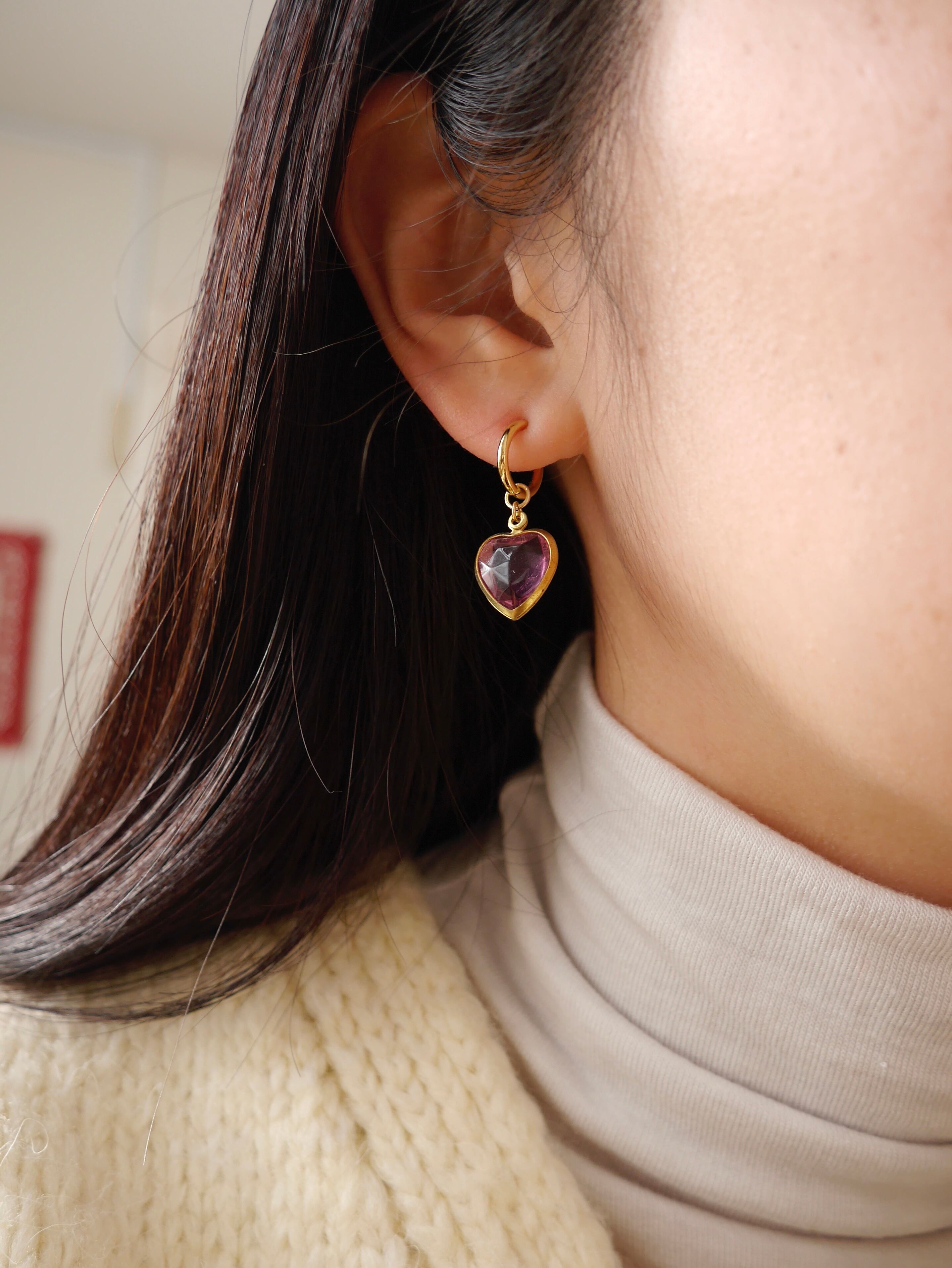 ヴィンテージルーサイトのハートチャームを使用したフープピアス/イヤリング。