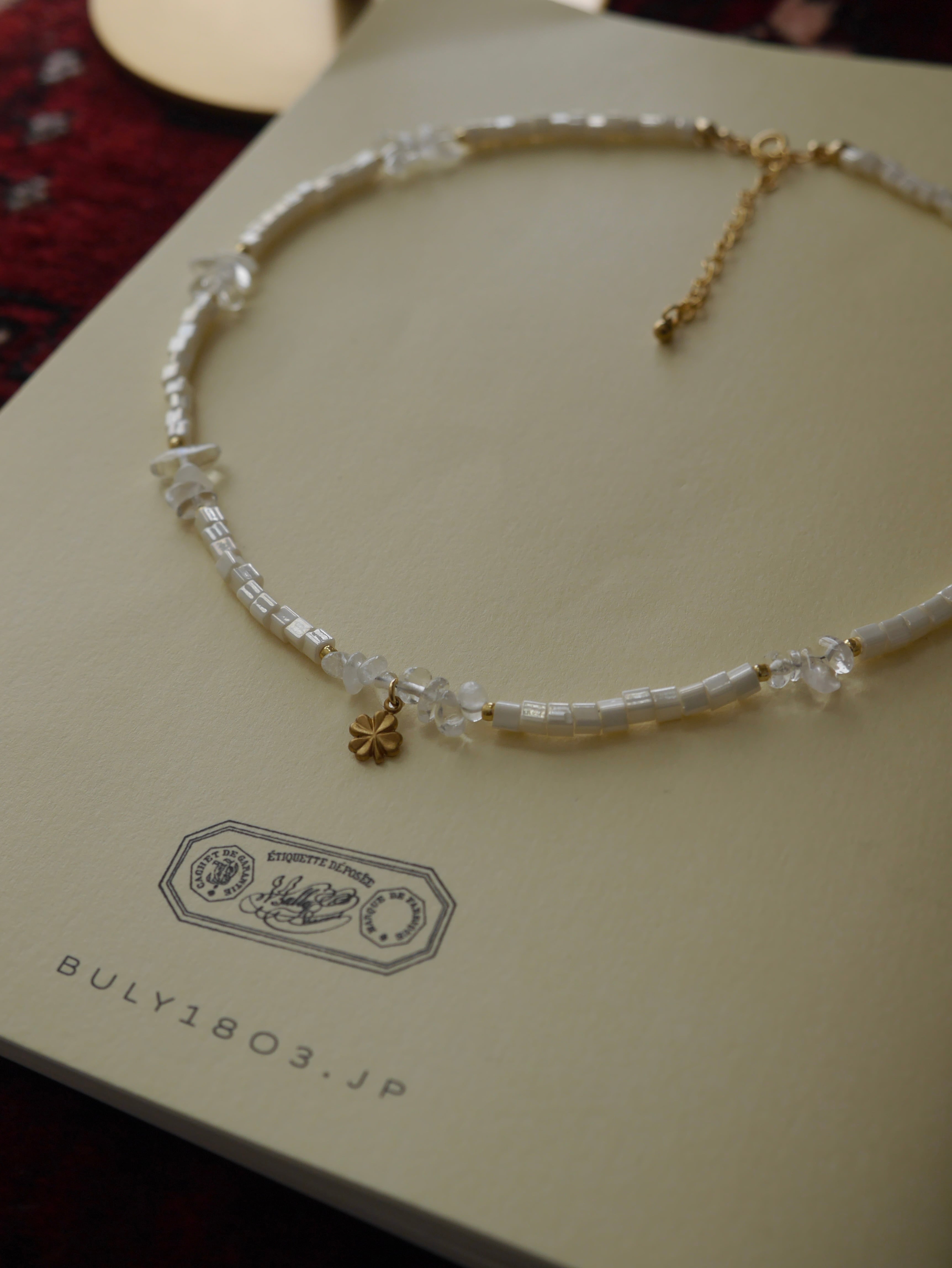 天然石水晶とガラスビーズで仕上げたネックレス。