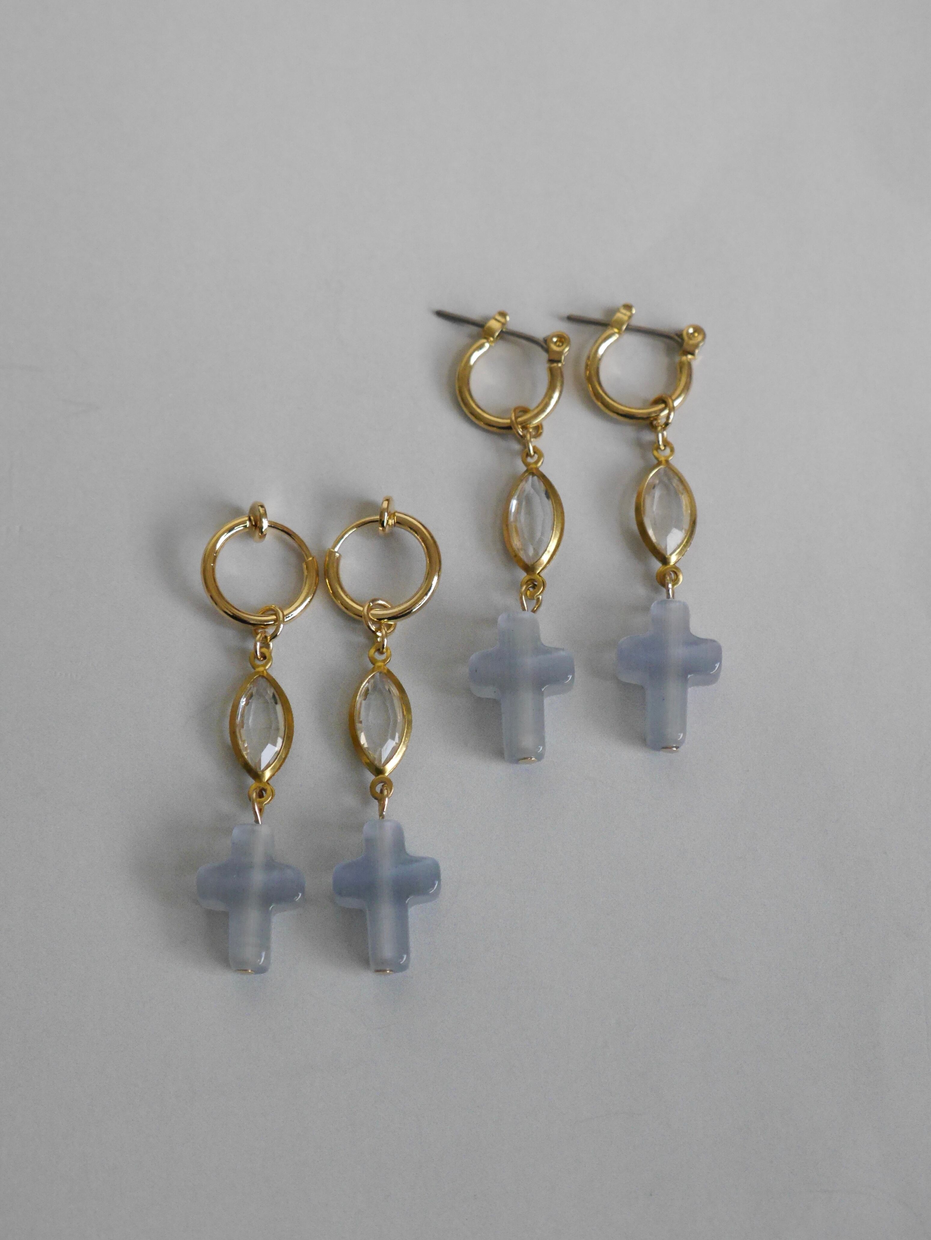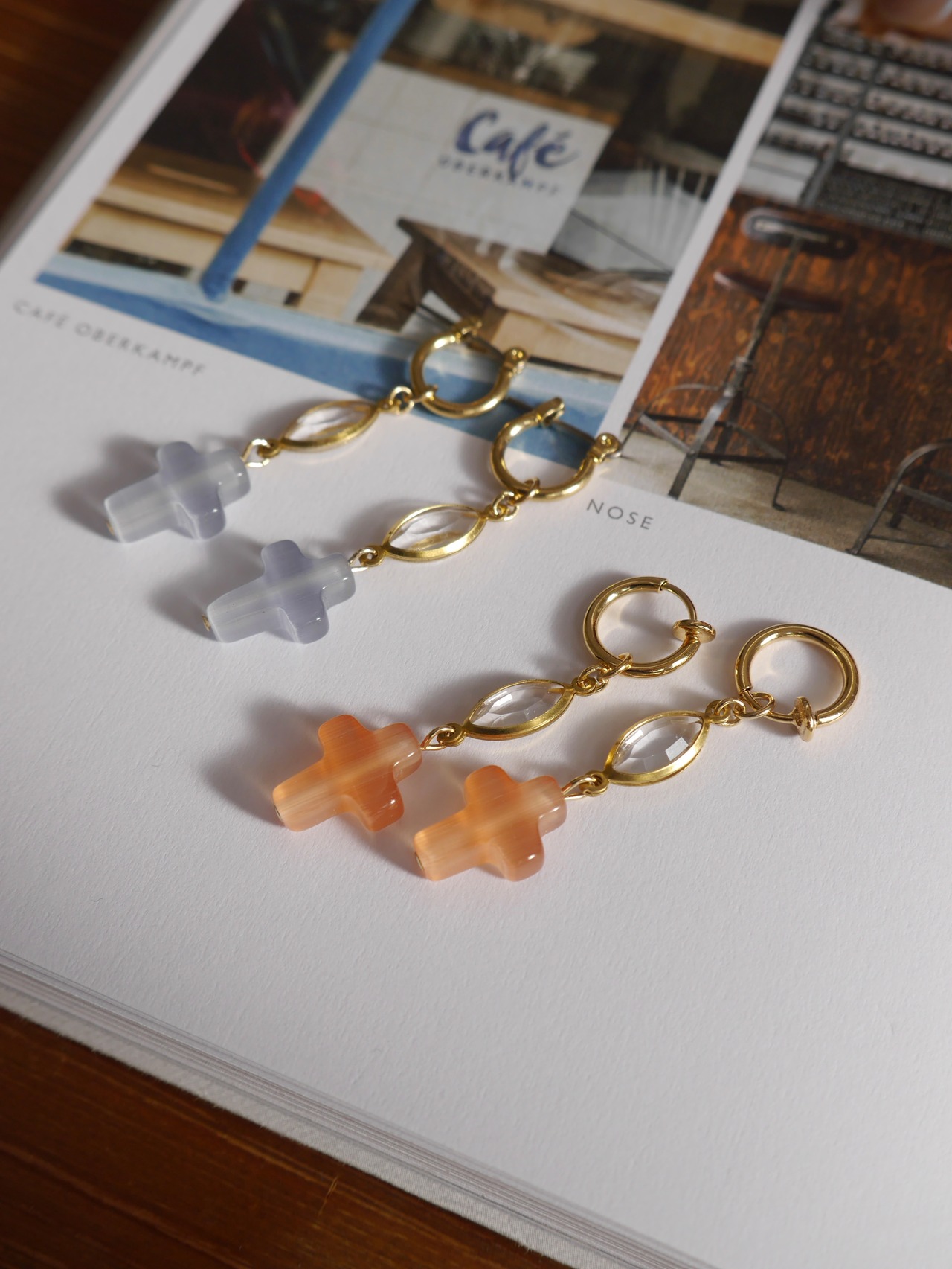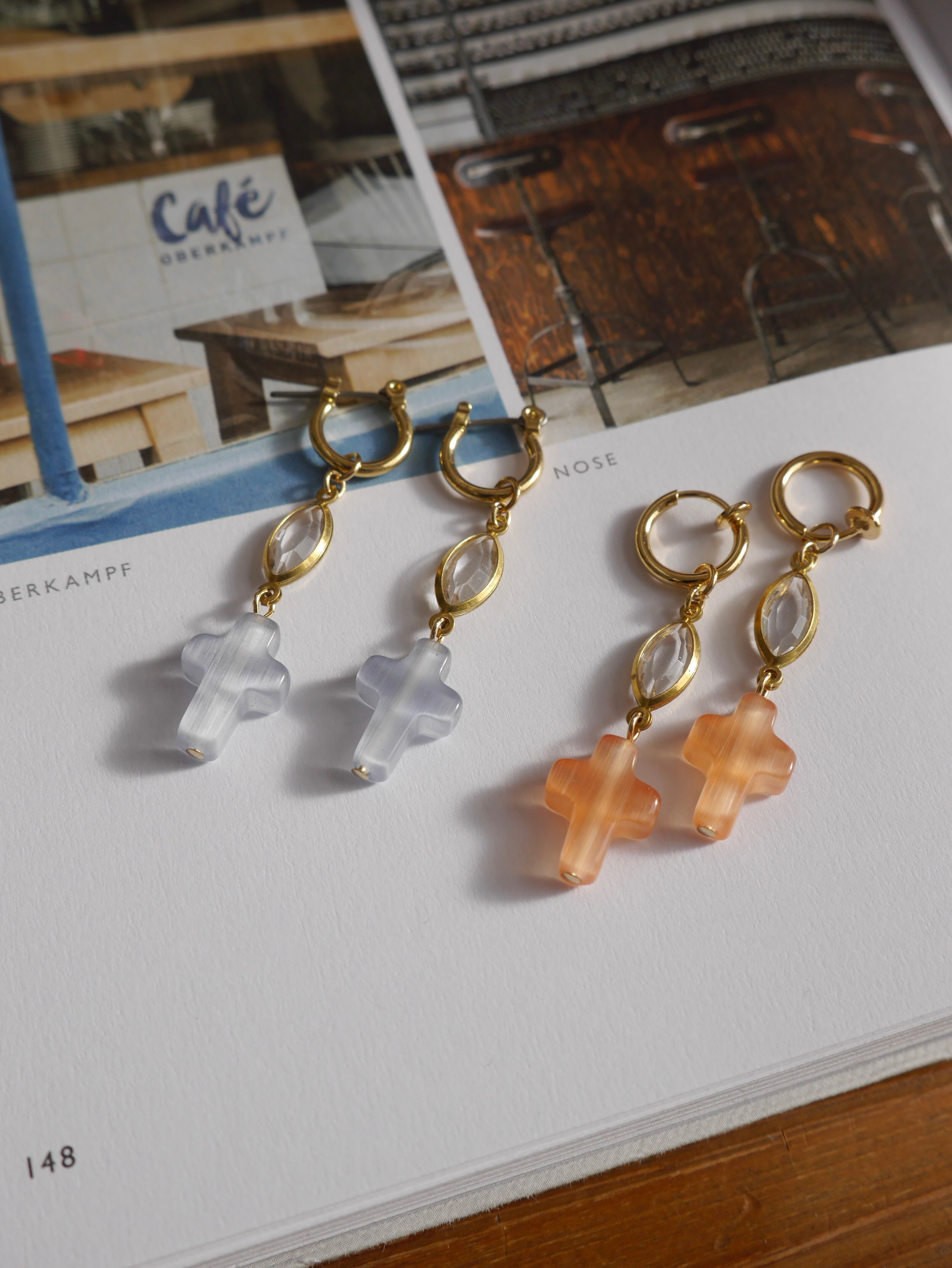 ガラス製のクロスチャームを使用したフープピアス/イヤリング。