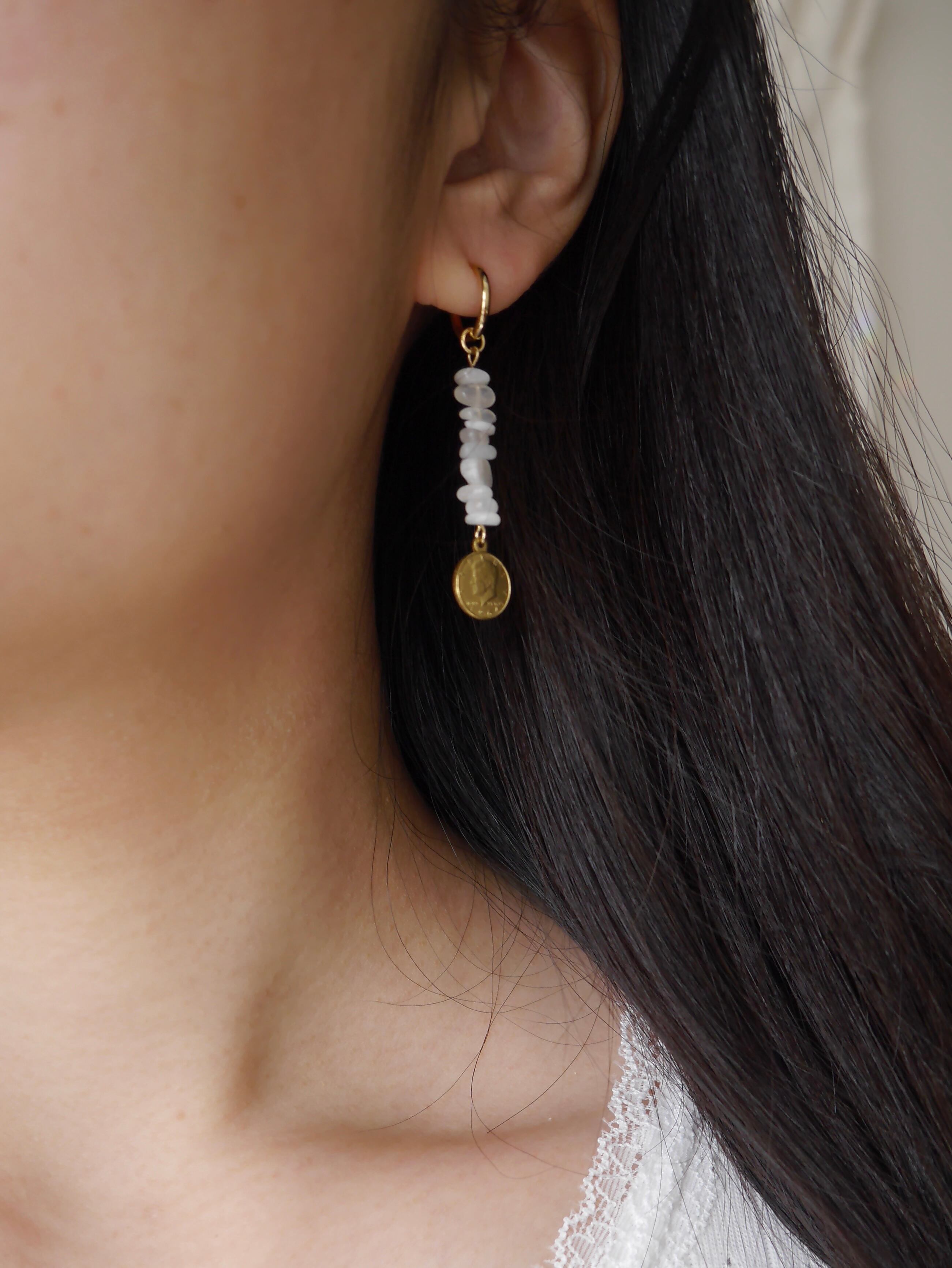 天然石/ムーンストーンのナチュラルな美しさを生かしたフープピアス/イヤリング。