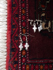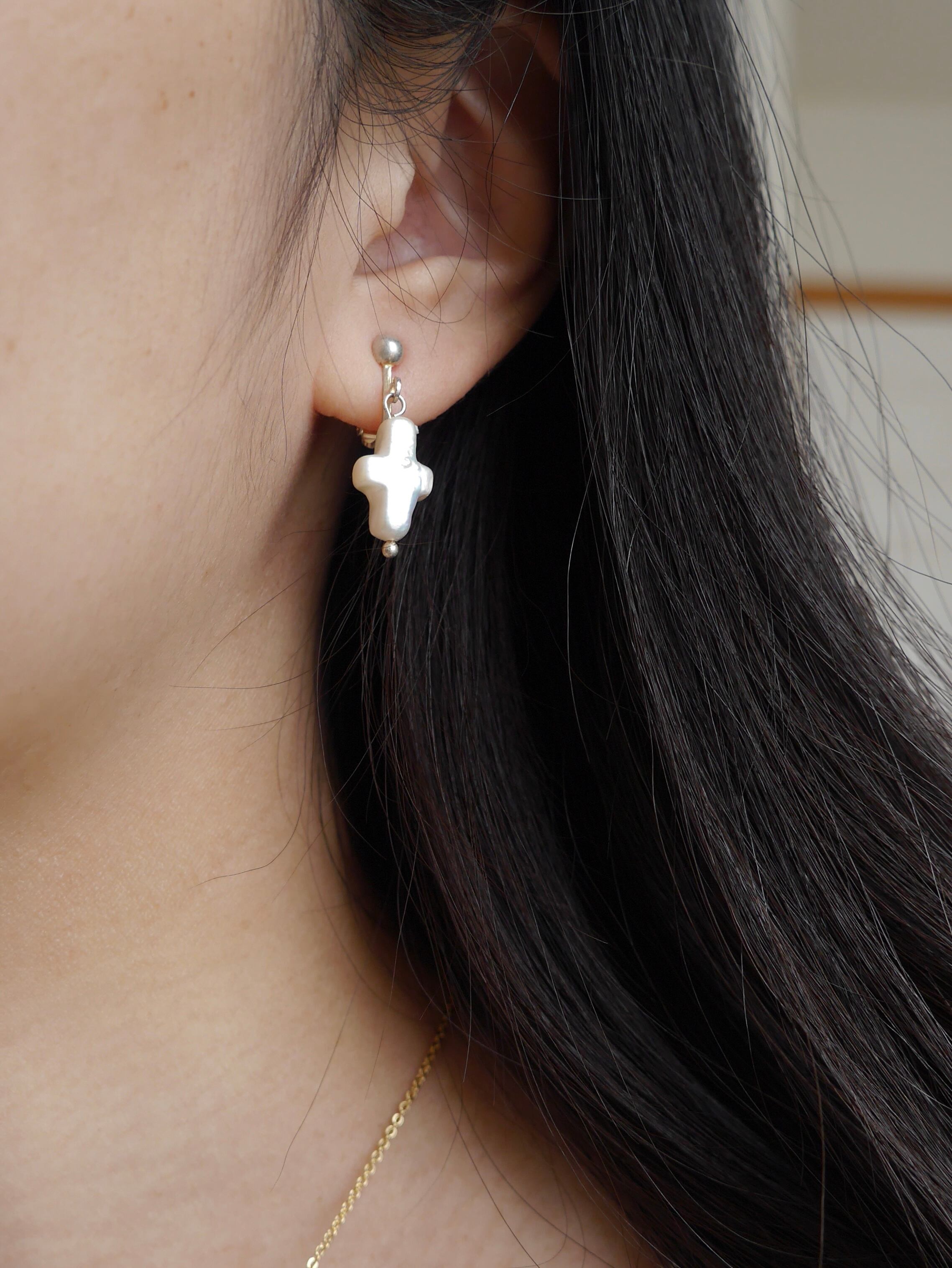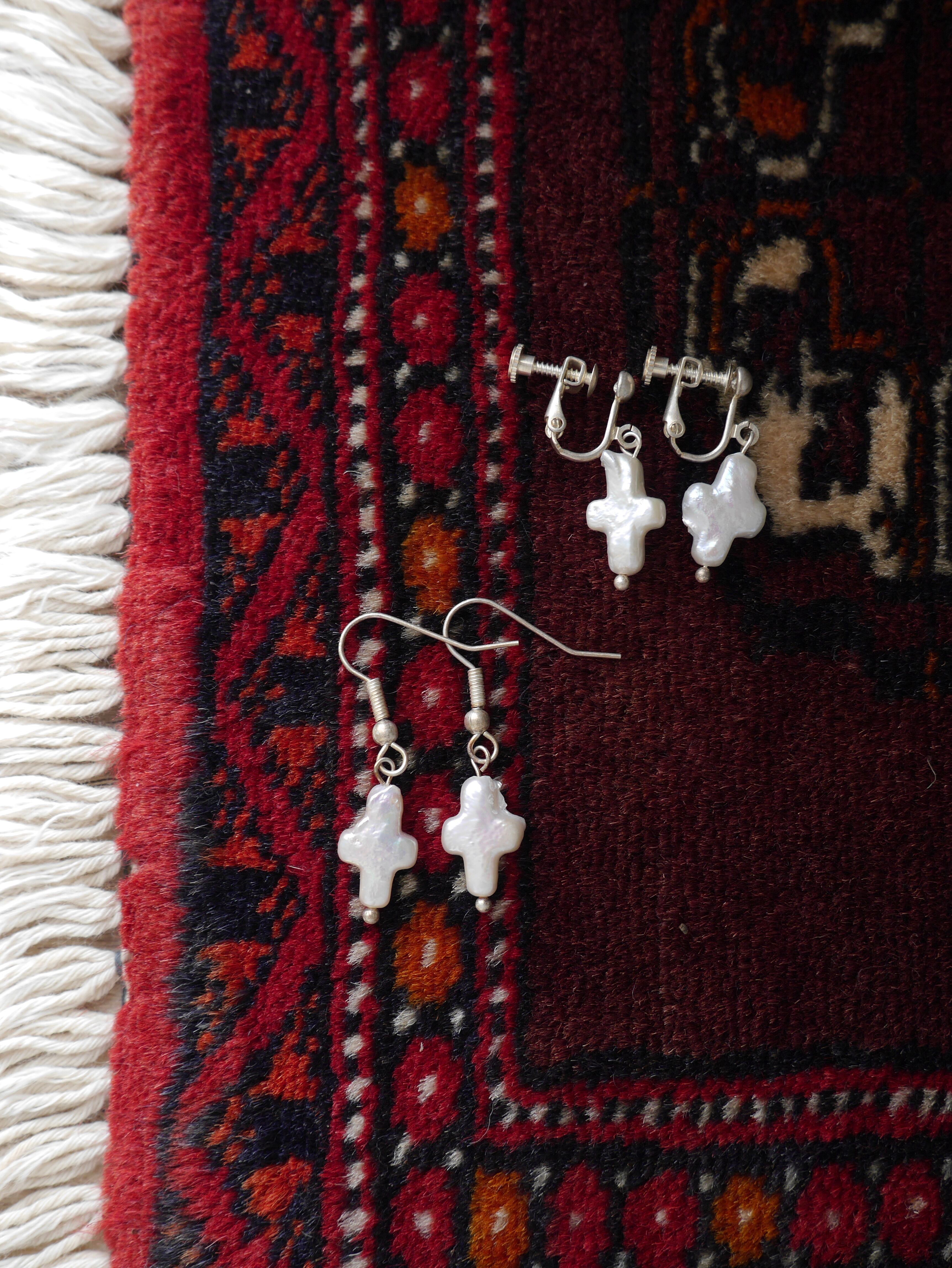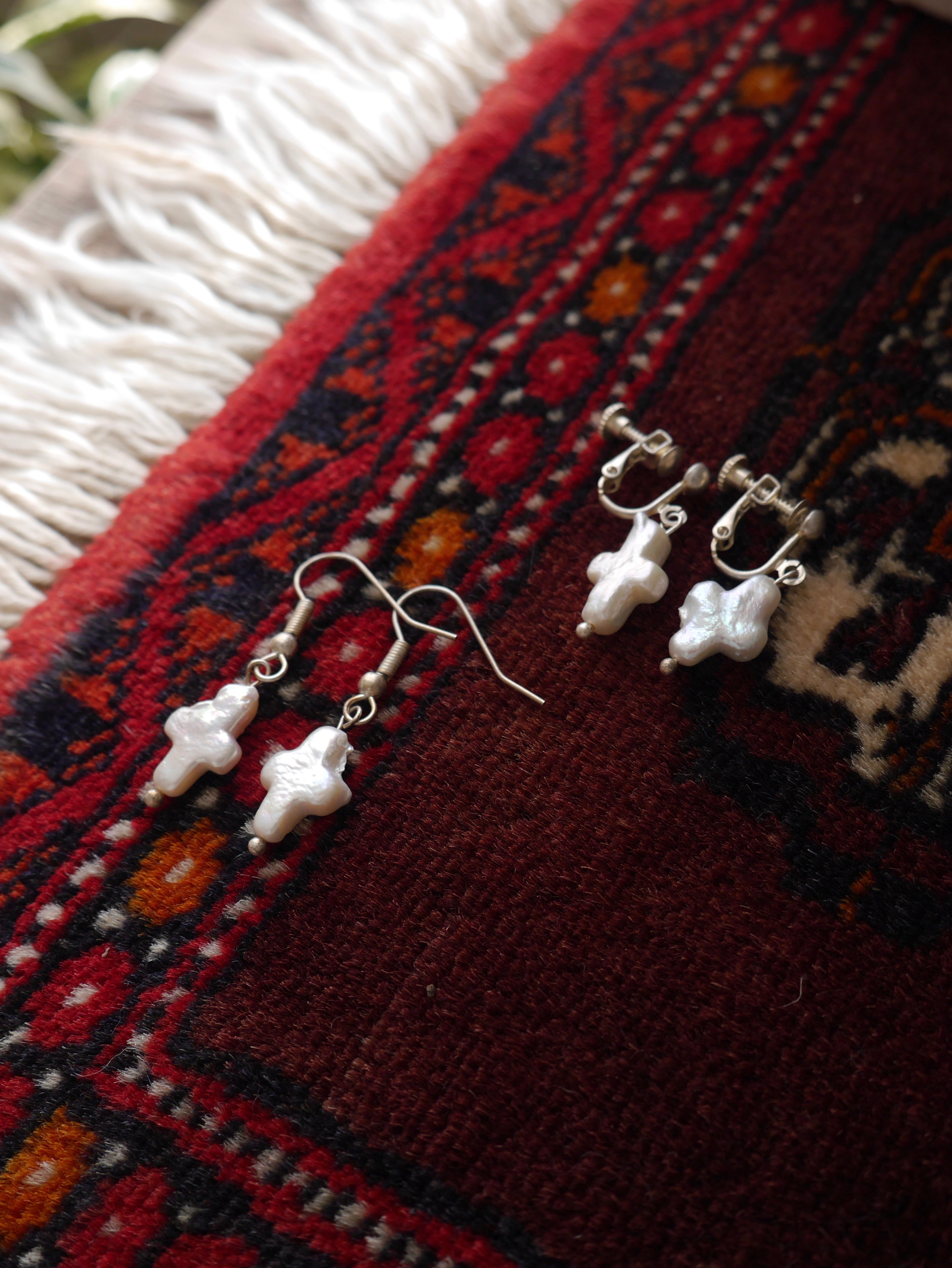 珍しいクロス形淡水パールのピアス/イヤリング。