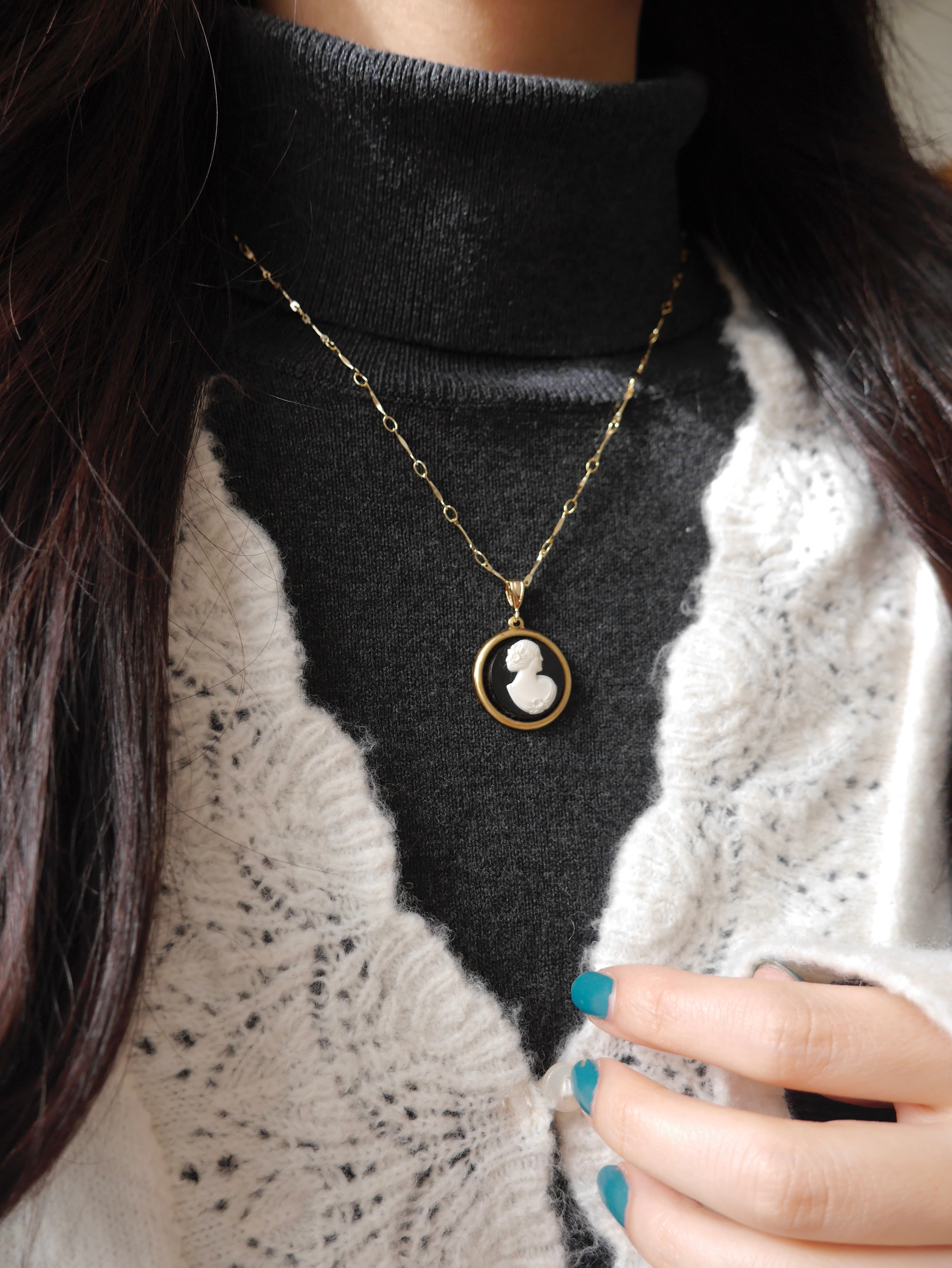 ■vintege black cameo necklace