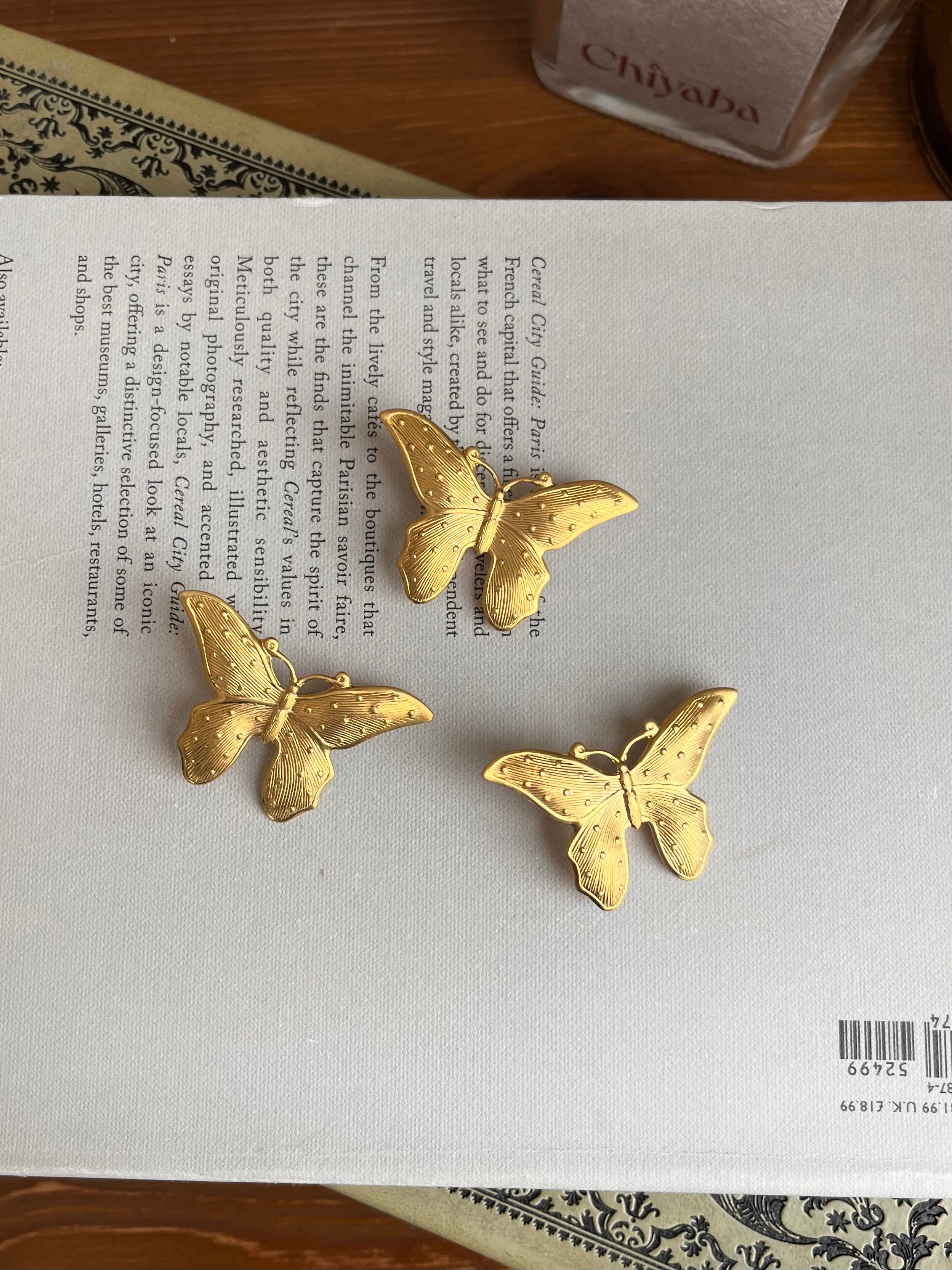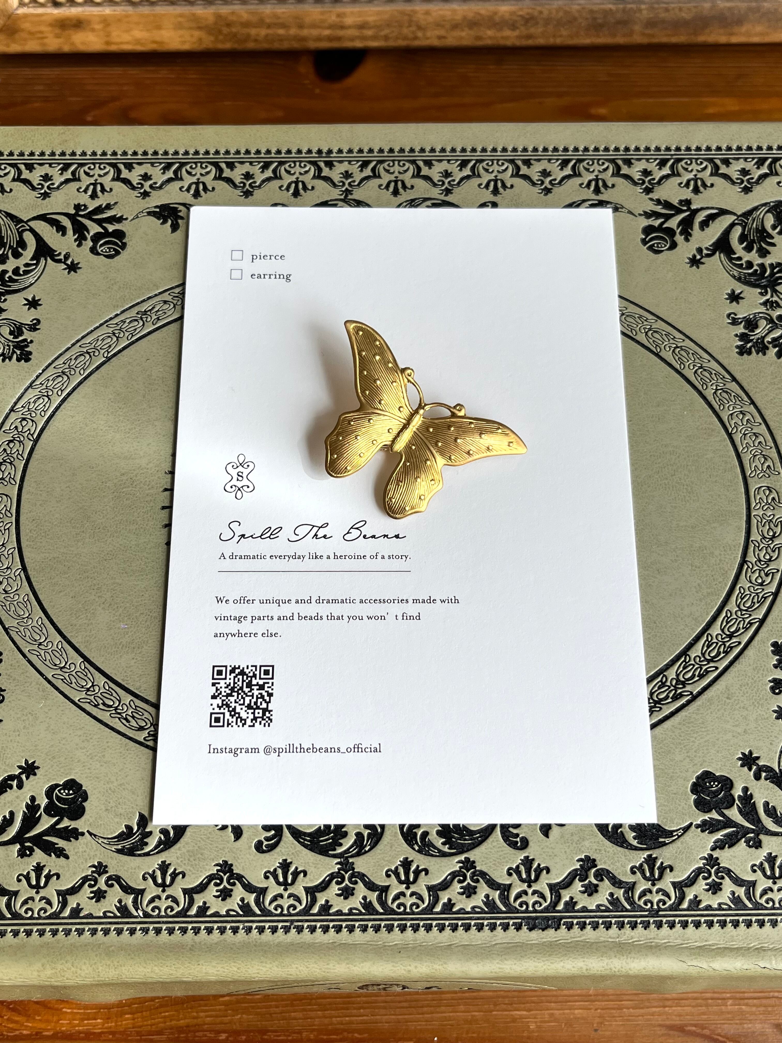 アメリカ製真鍮パーツ、細かなデザインが美しい蝶ブローチ。
